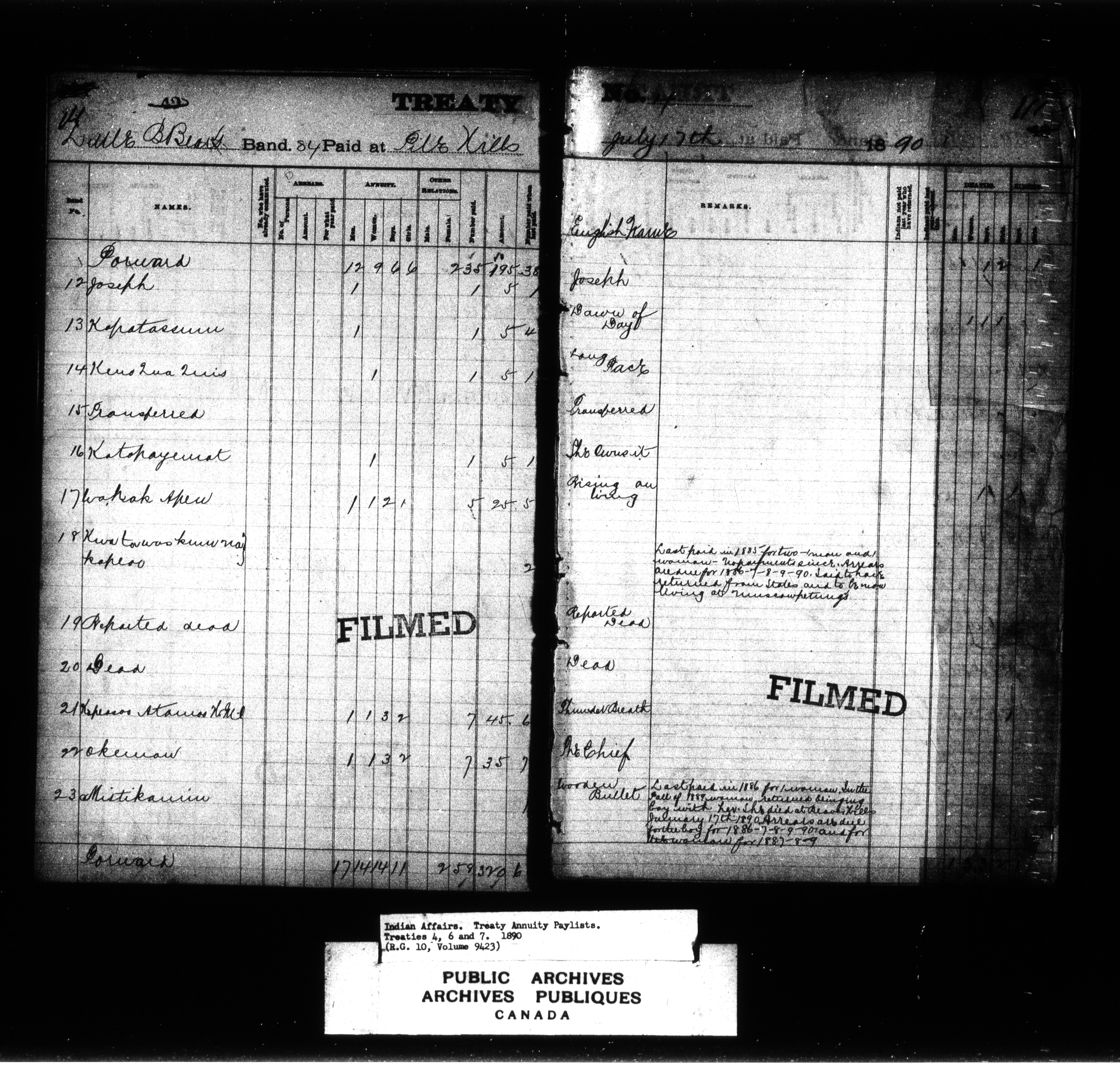 Indian Affairs, Annuity Paylists, Treaties 4, 6 and 7 1887 - 7147