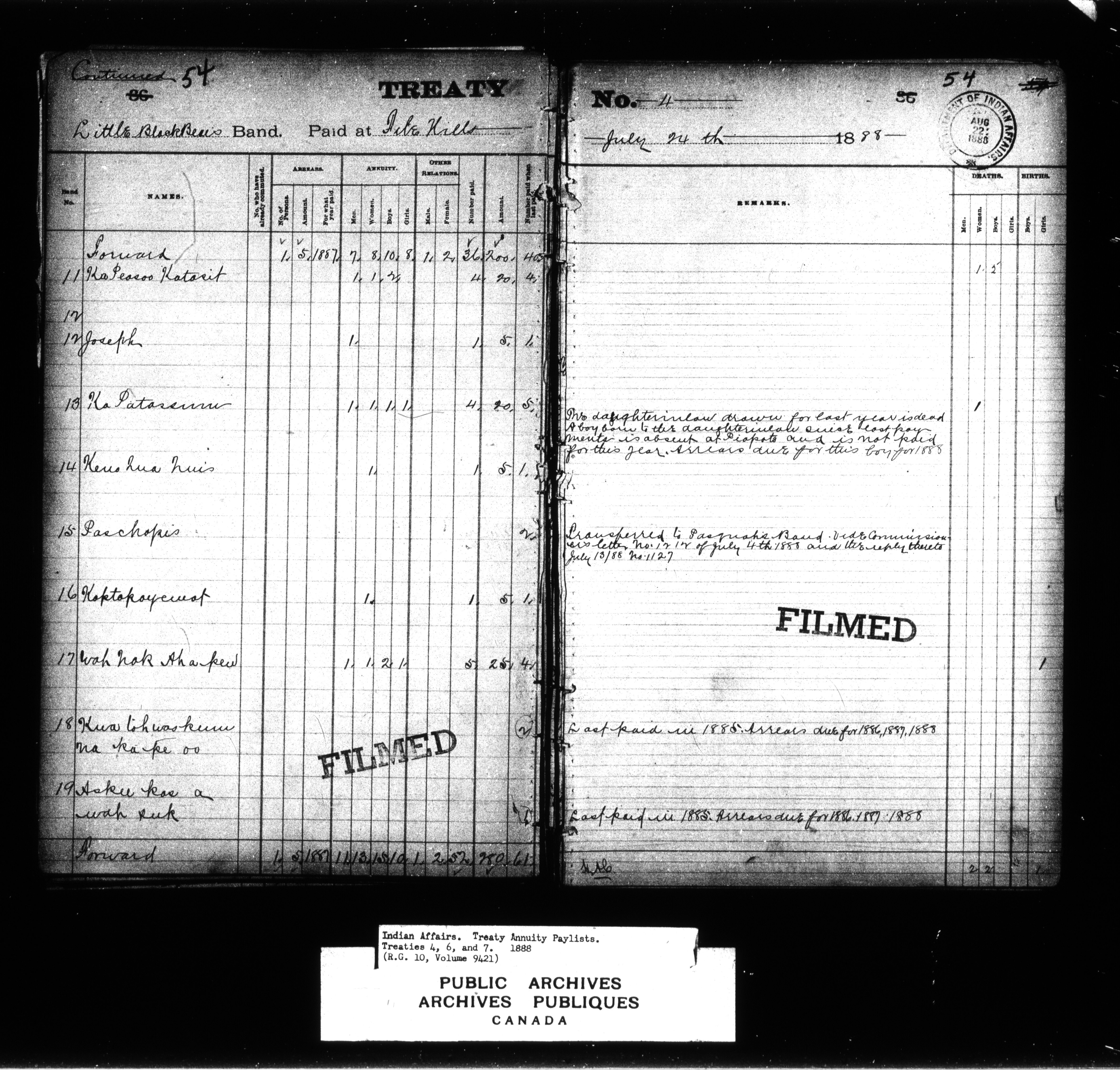 Indian Affairs, Annuity Paylists, Treaties 4, 6 and 7 1887 - 7147