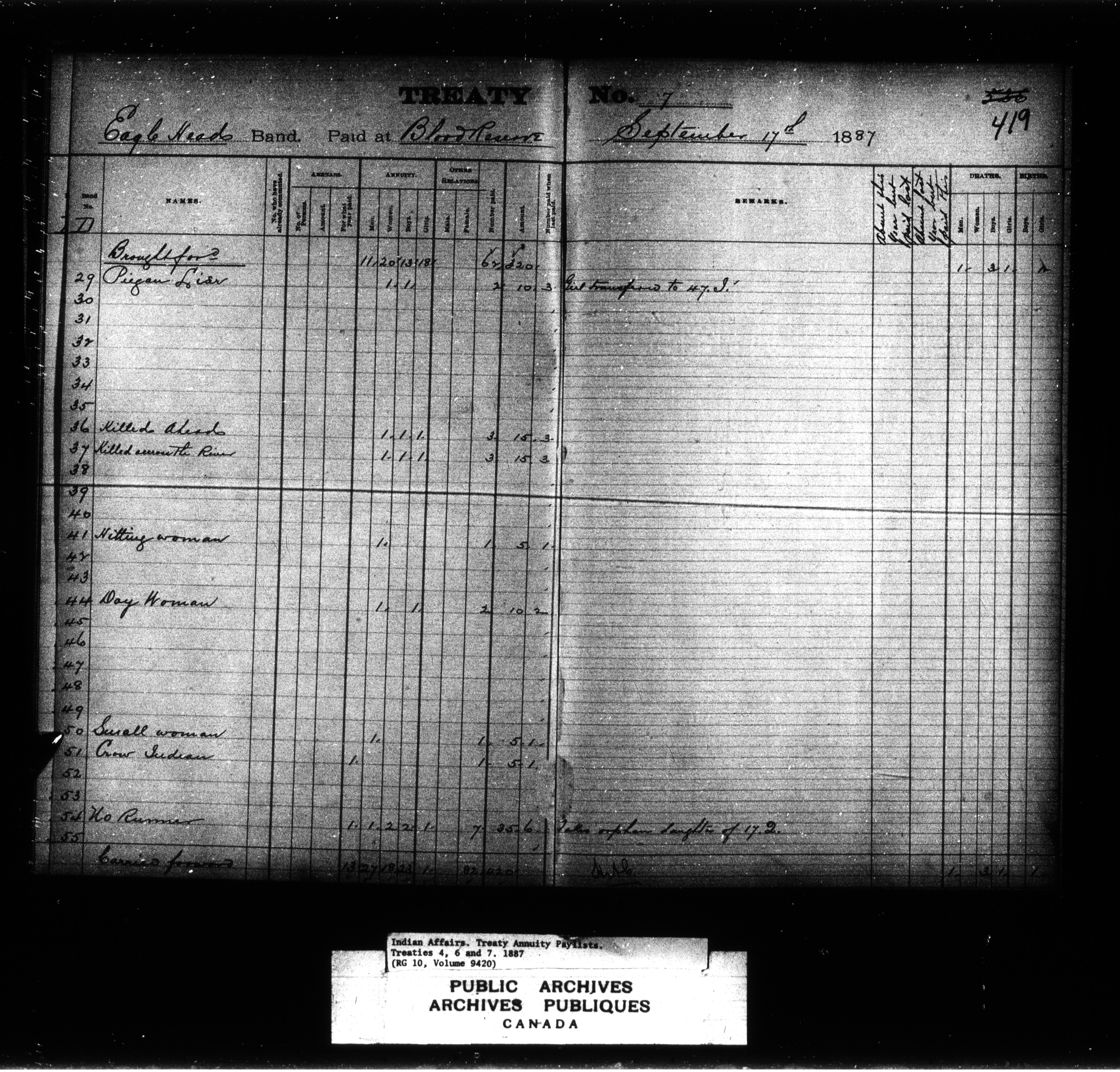 Indian Affairs, Annuity Paylists, Treaties 4, 6 and 7 1887 - 7147