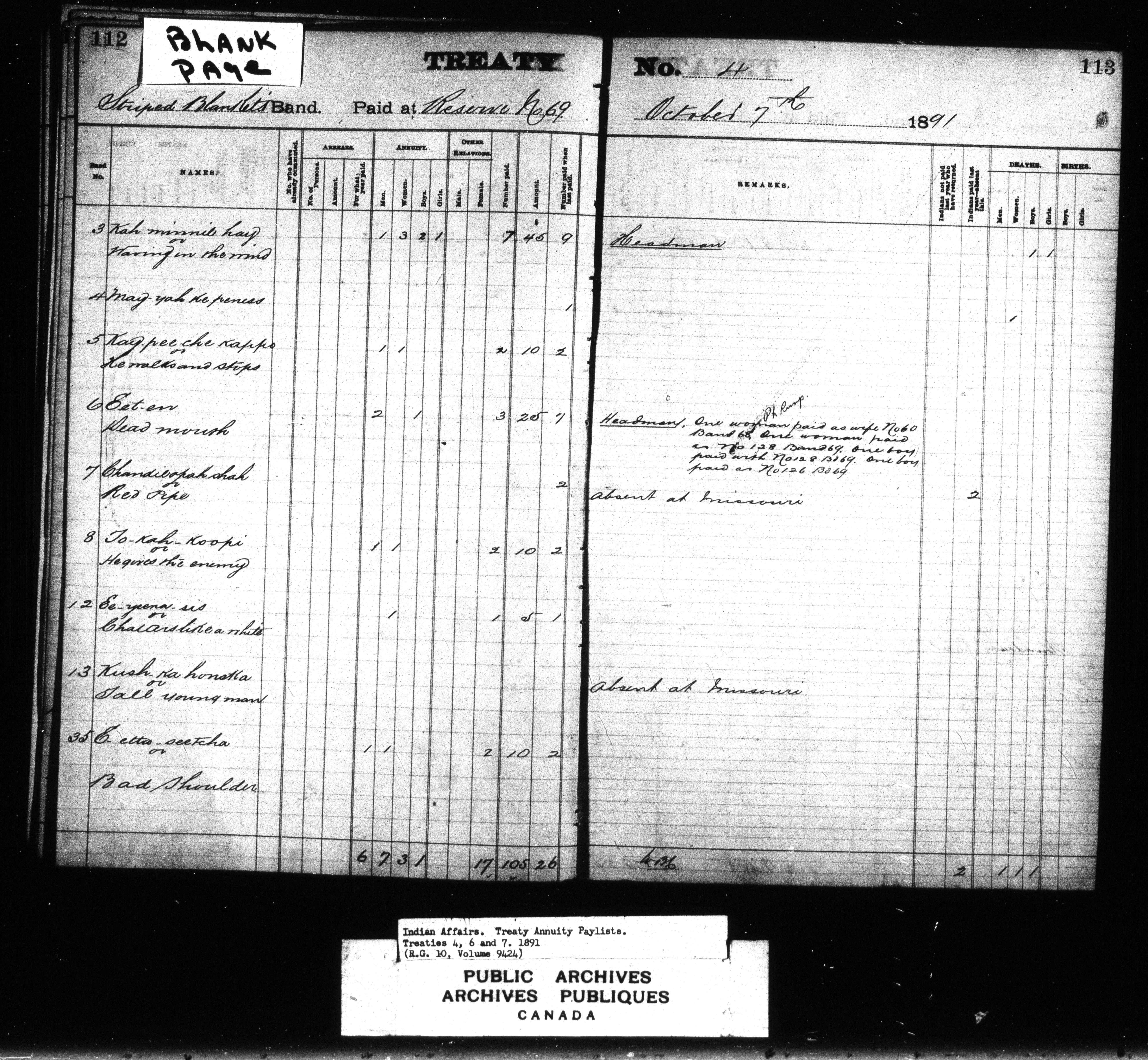 Indian Affairs, Annuity Paylists : C-7148