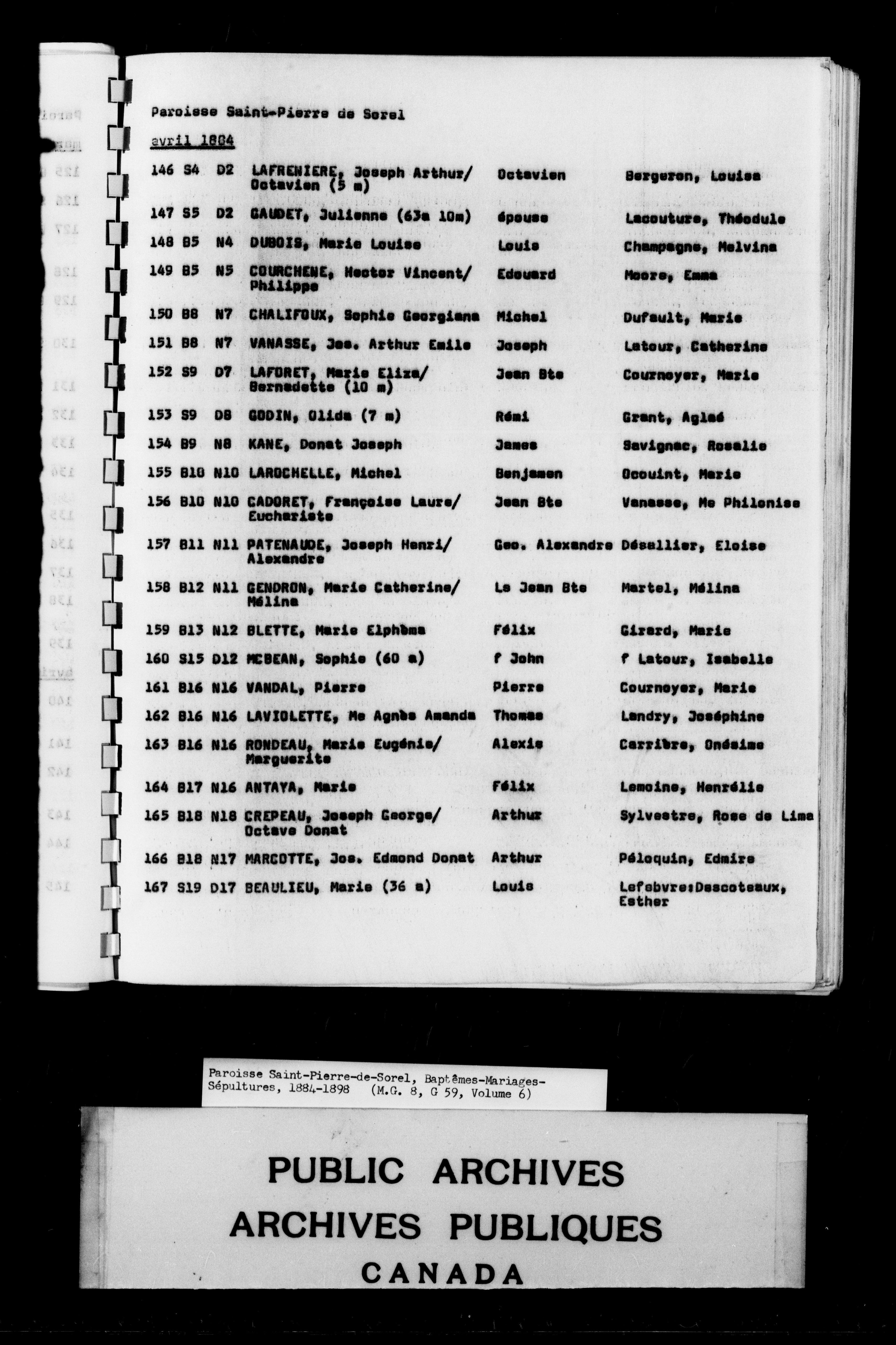Paroisse Saint-Pierre de Sorel : Baptemes, mariages, sépultures (résumés) - 7205