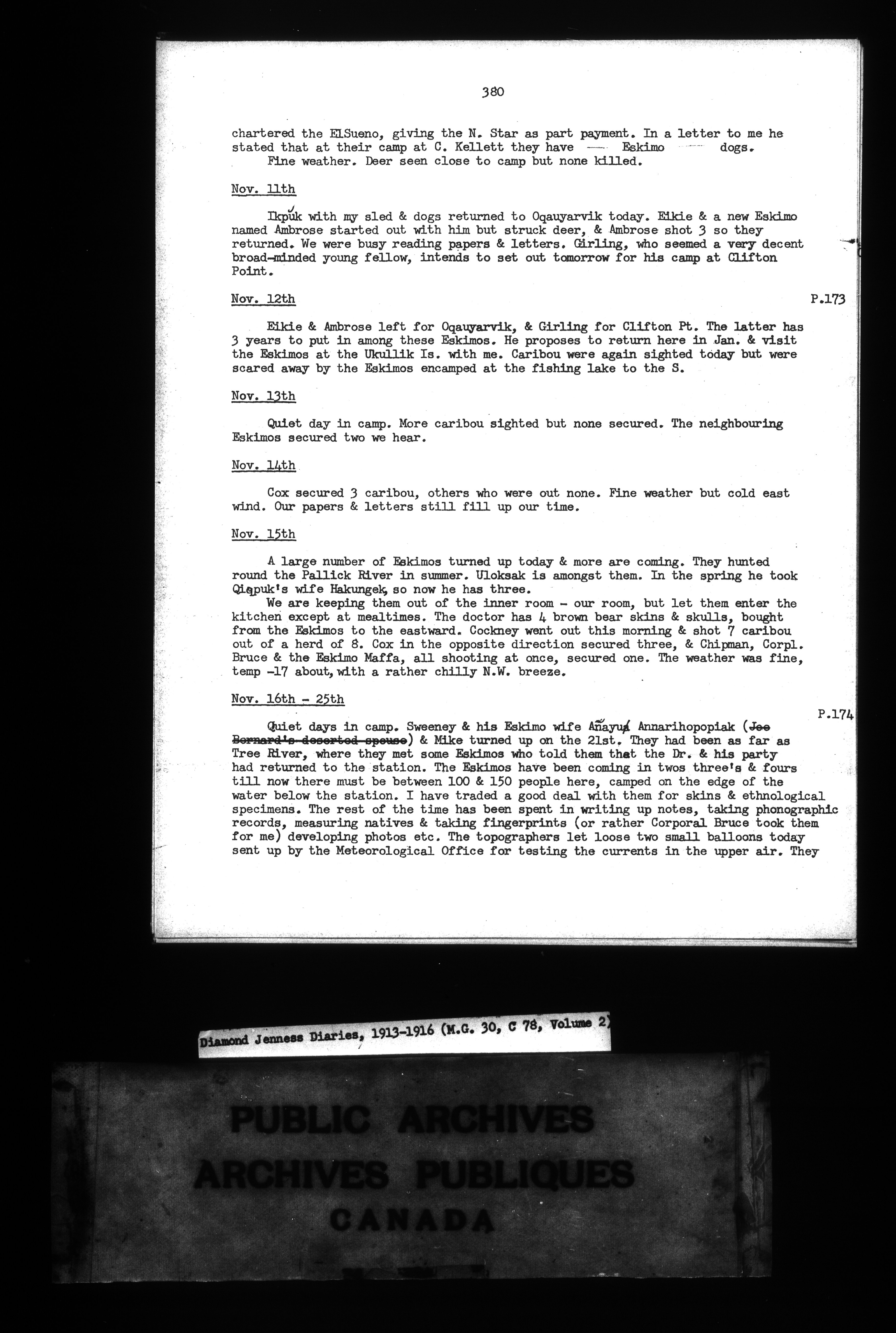 Diamond Jenness typescript of diaries, 1913-1916 - 7207