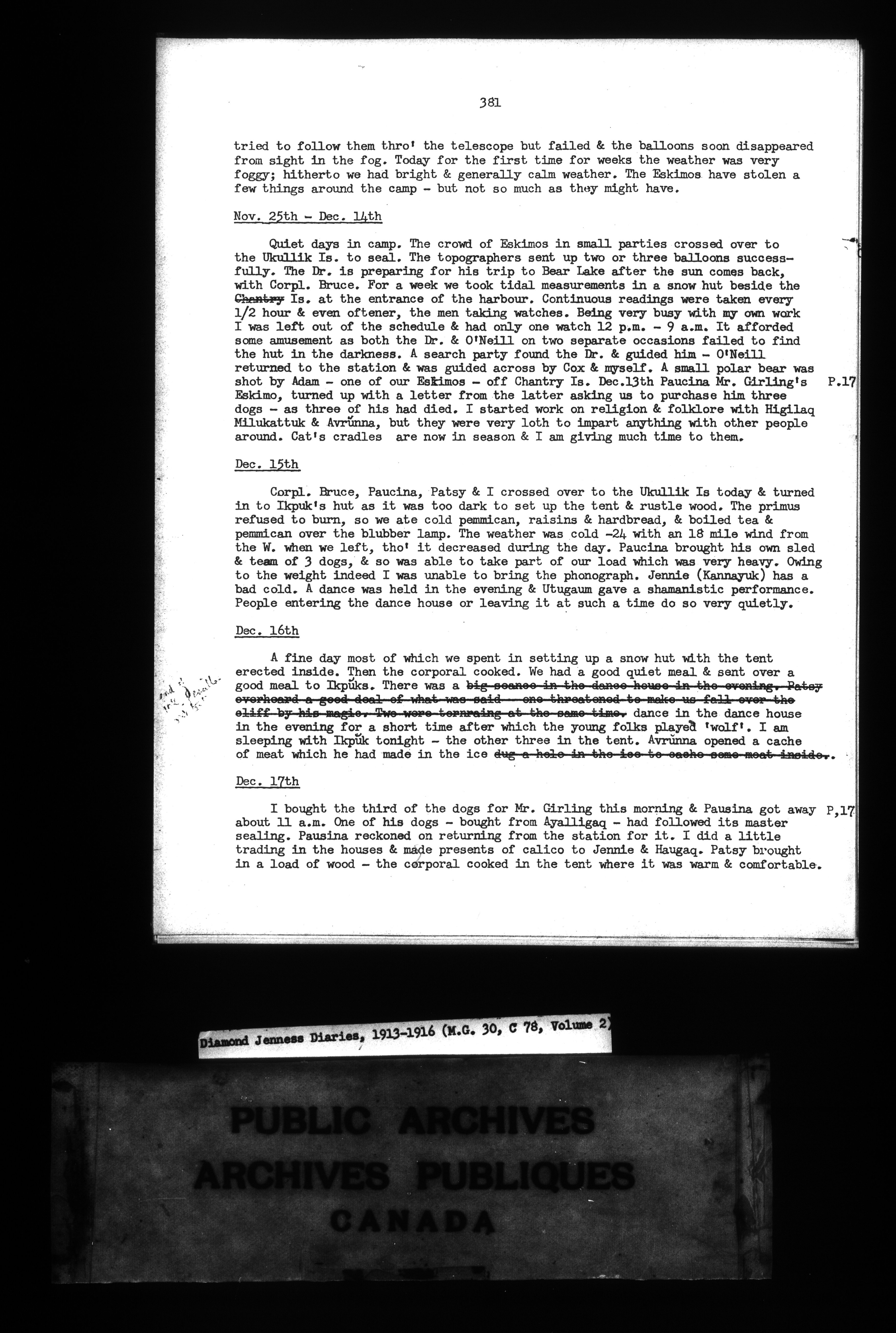 Diamond Jenness typescript of diaries, 1913-1916 - 7207