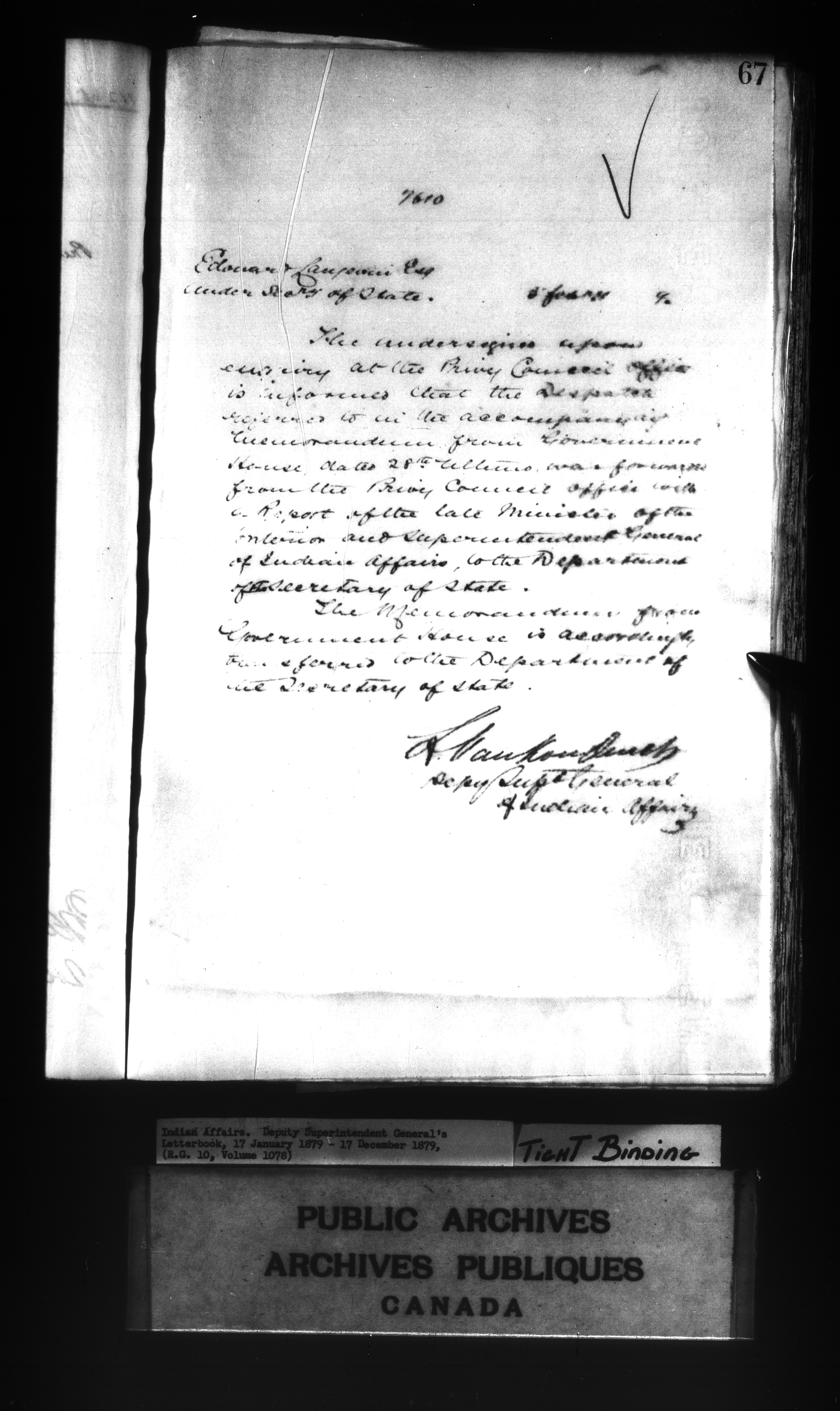 Office of the Deputy Superintendent General of Indian Affairs : letterbooks, 1862-1924 : C-7208