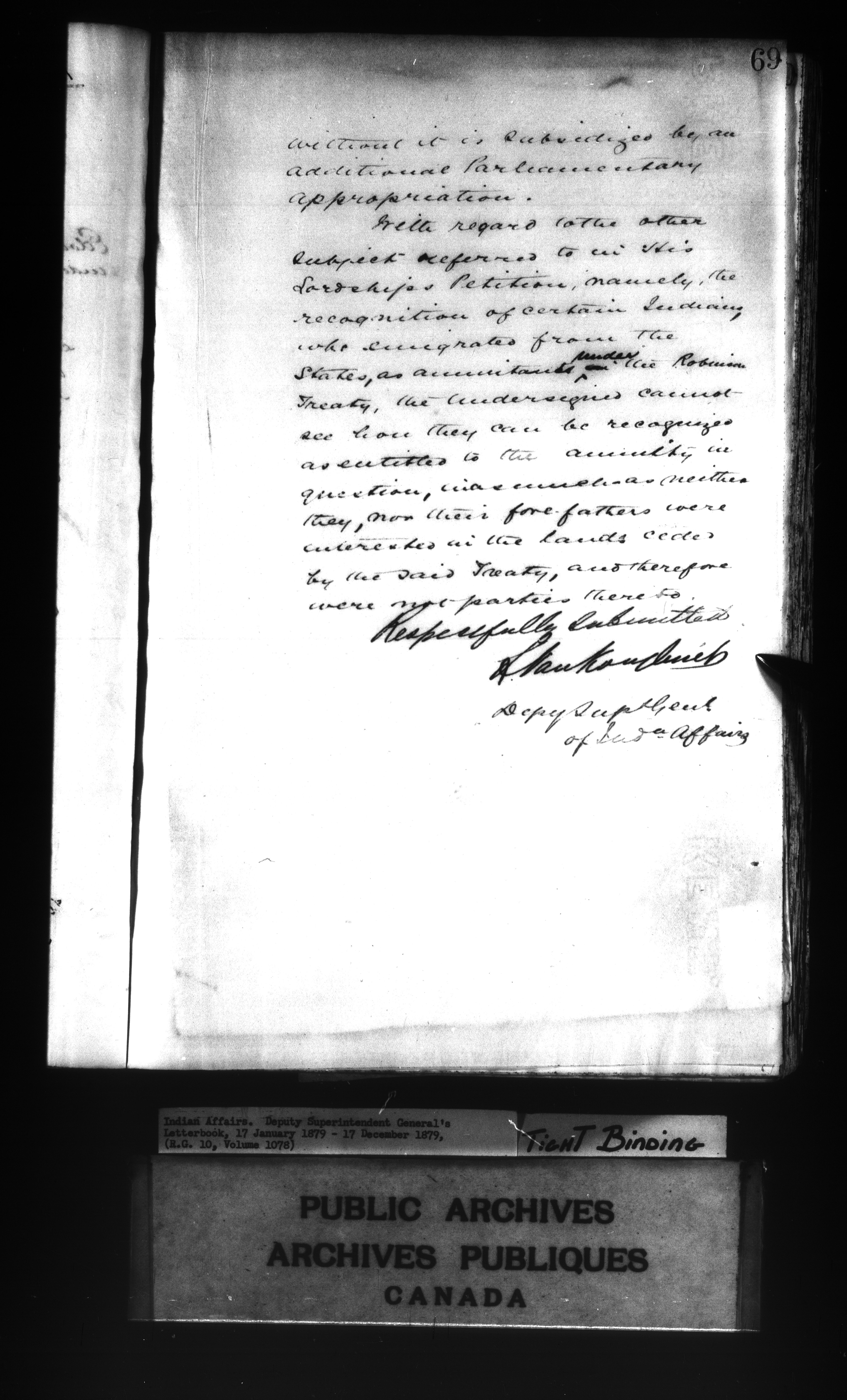 Office of the Deputy Superintendent General of Indian Affairs : letterbooks, 1862-1924 : C-7208