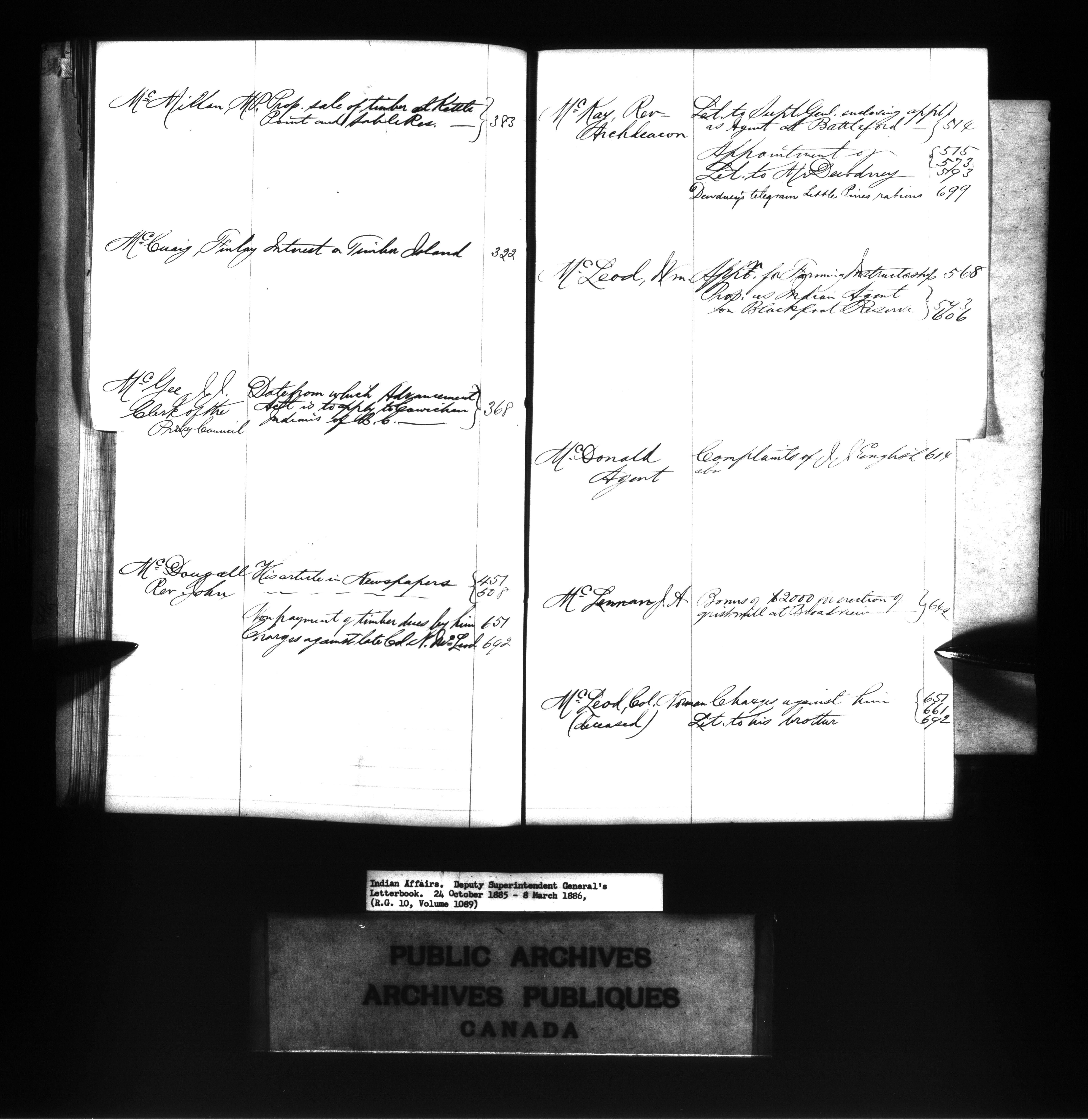 Office of the Deputy Superintendent General of Indian Affairs : letterbooks, 1862-1924 : C-7215
