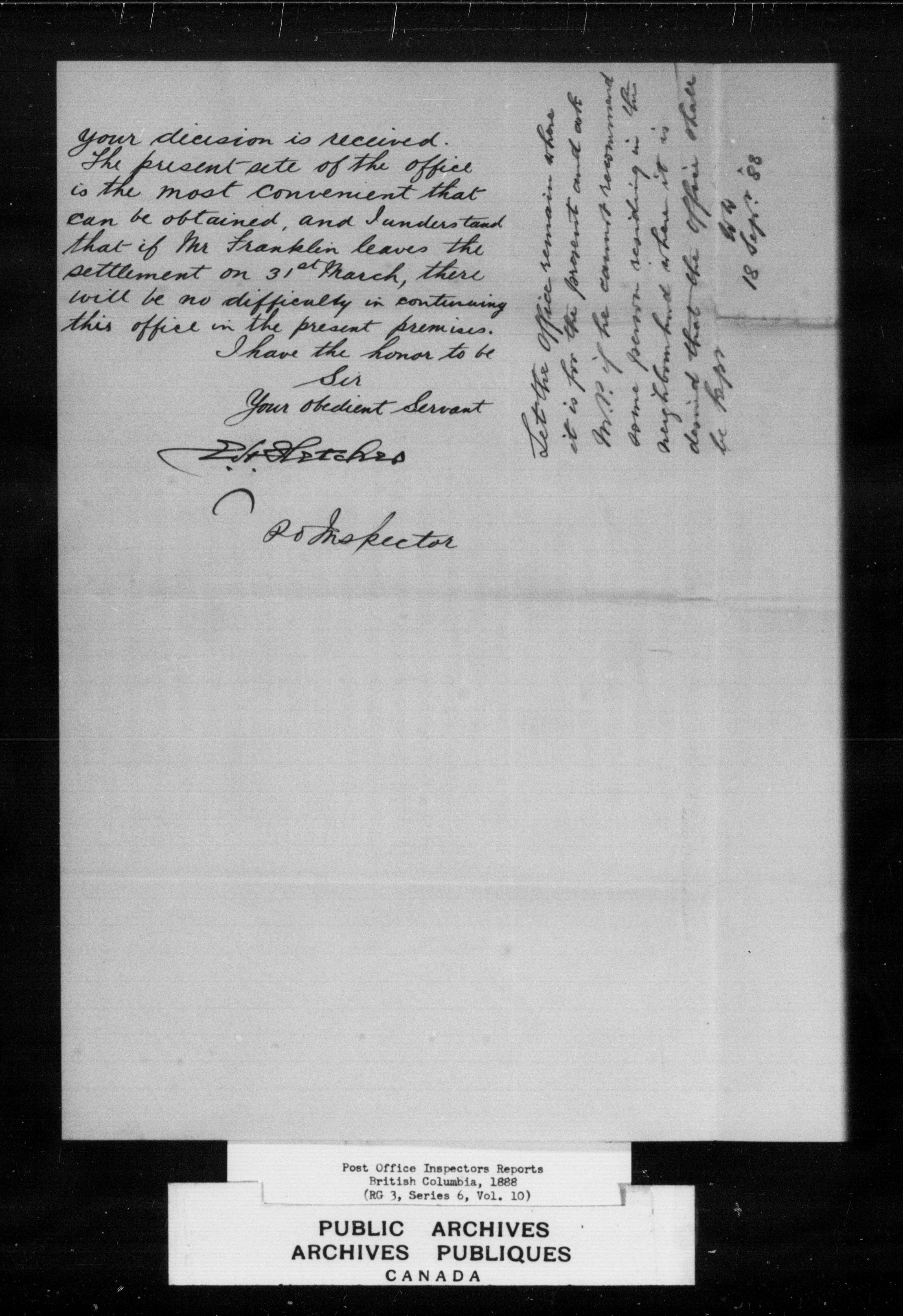 Post Office Inspectors Reports for British Columbia - 7228