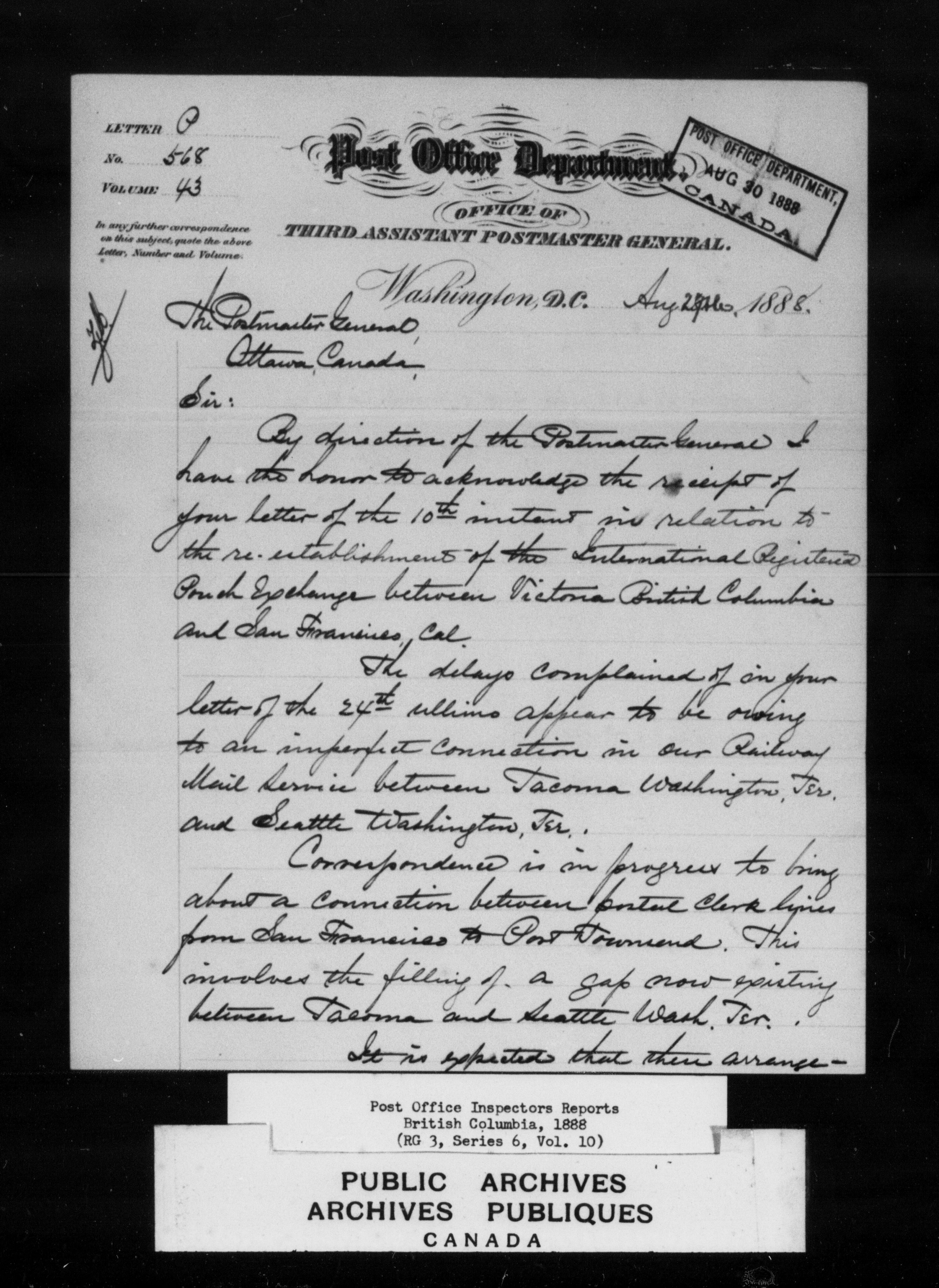 Post Office Inspectors Reports for British Columbia - 7228