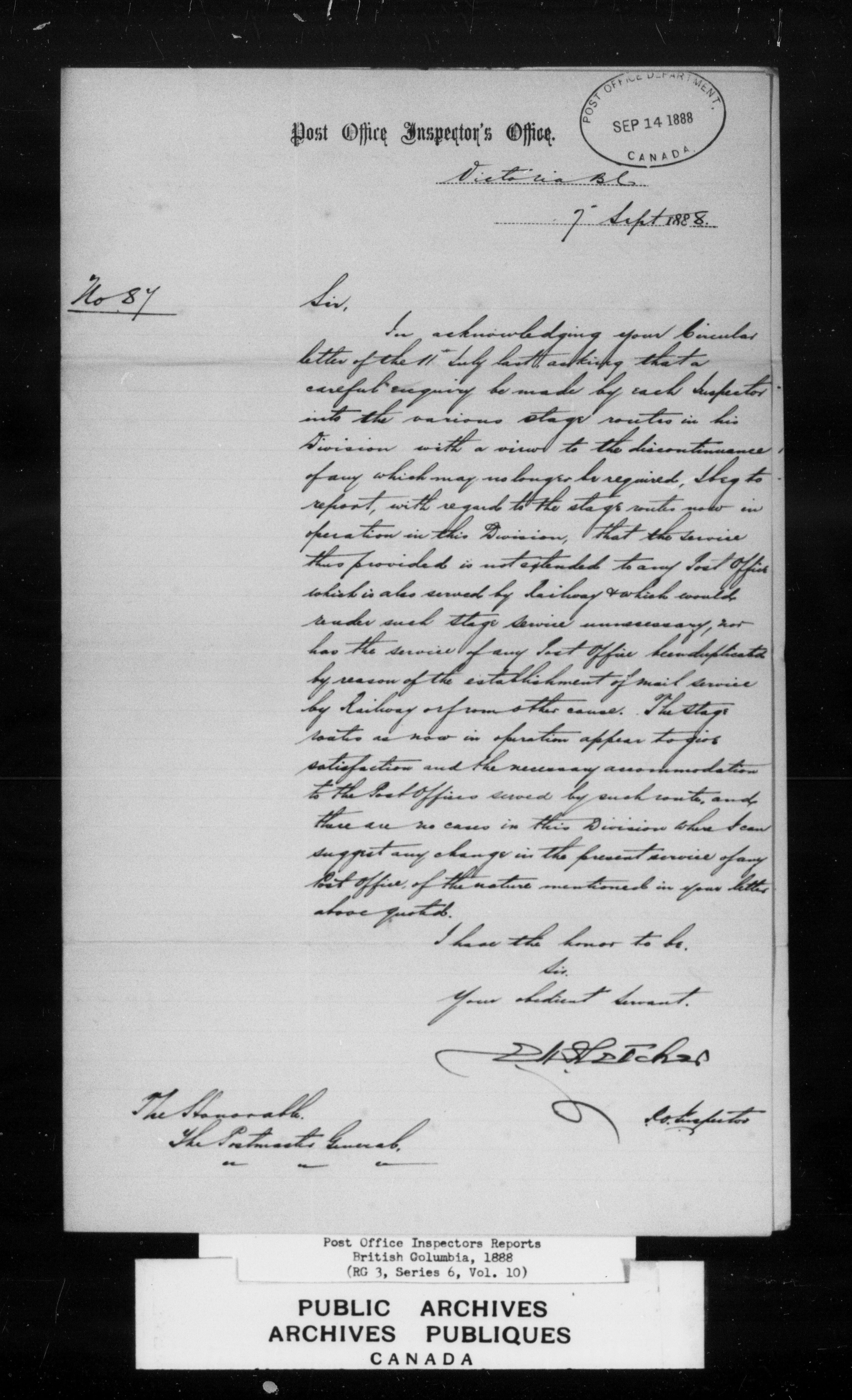 Post Office Inspectors Reports for British Columbia - 7228