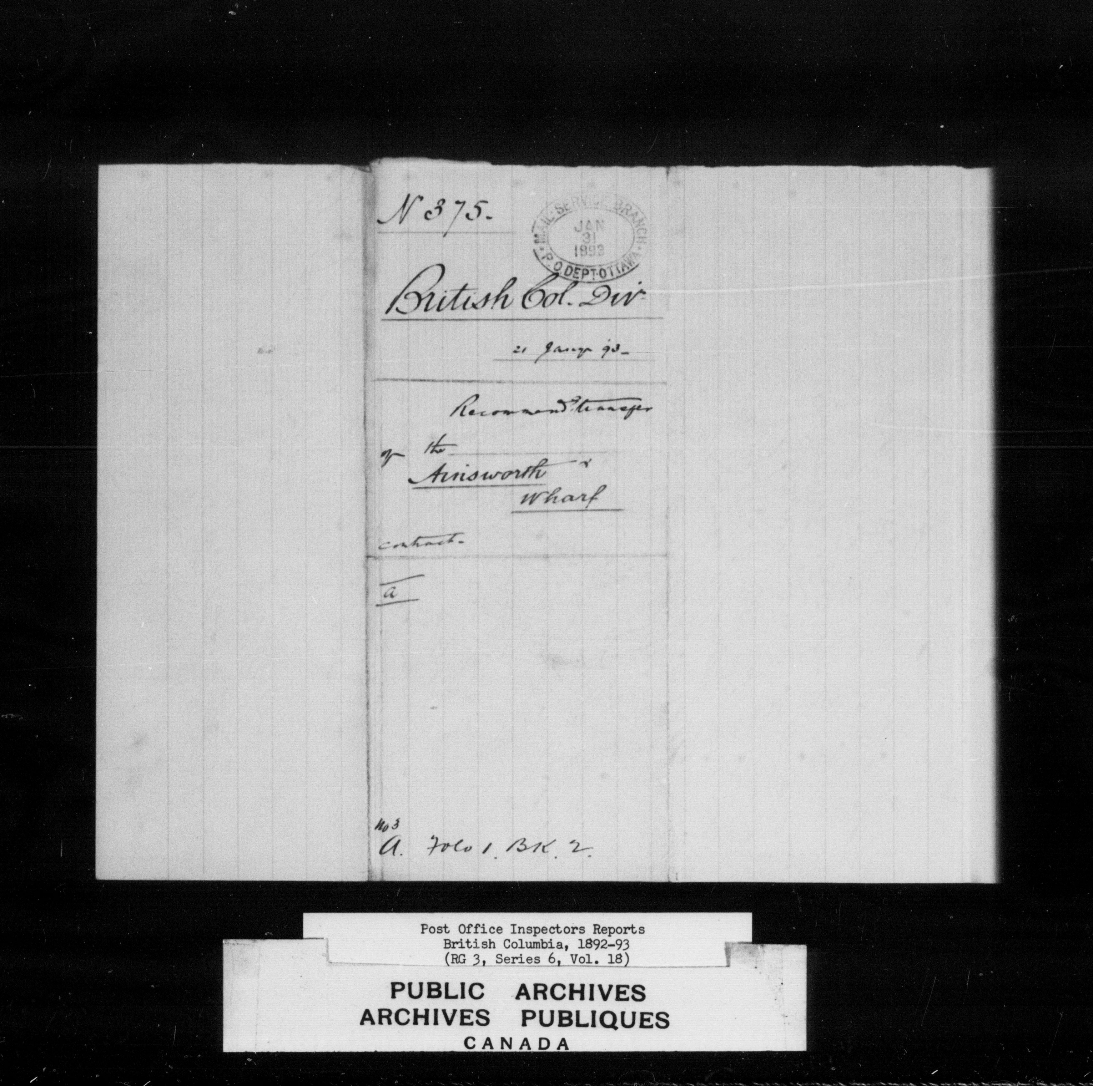 Post Office Department, Divisional Inspectors : Reports : C-7230