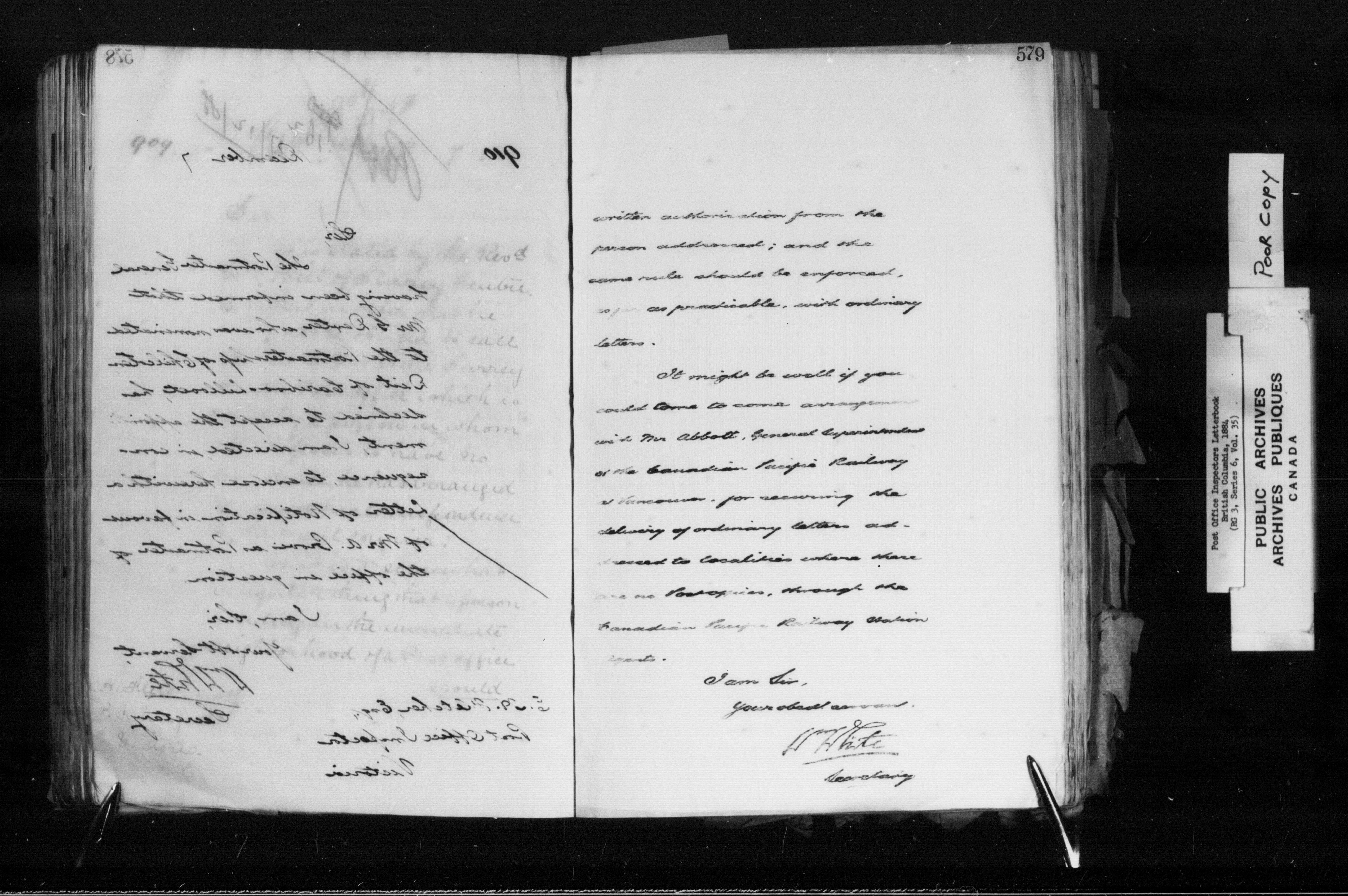 Correspondence from the Secretary to Post Office Inspectors - Letterbooks - British Columbia - 7234