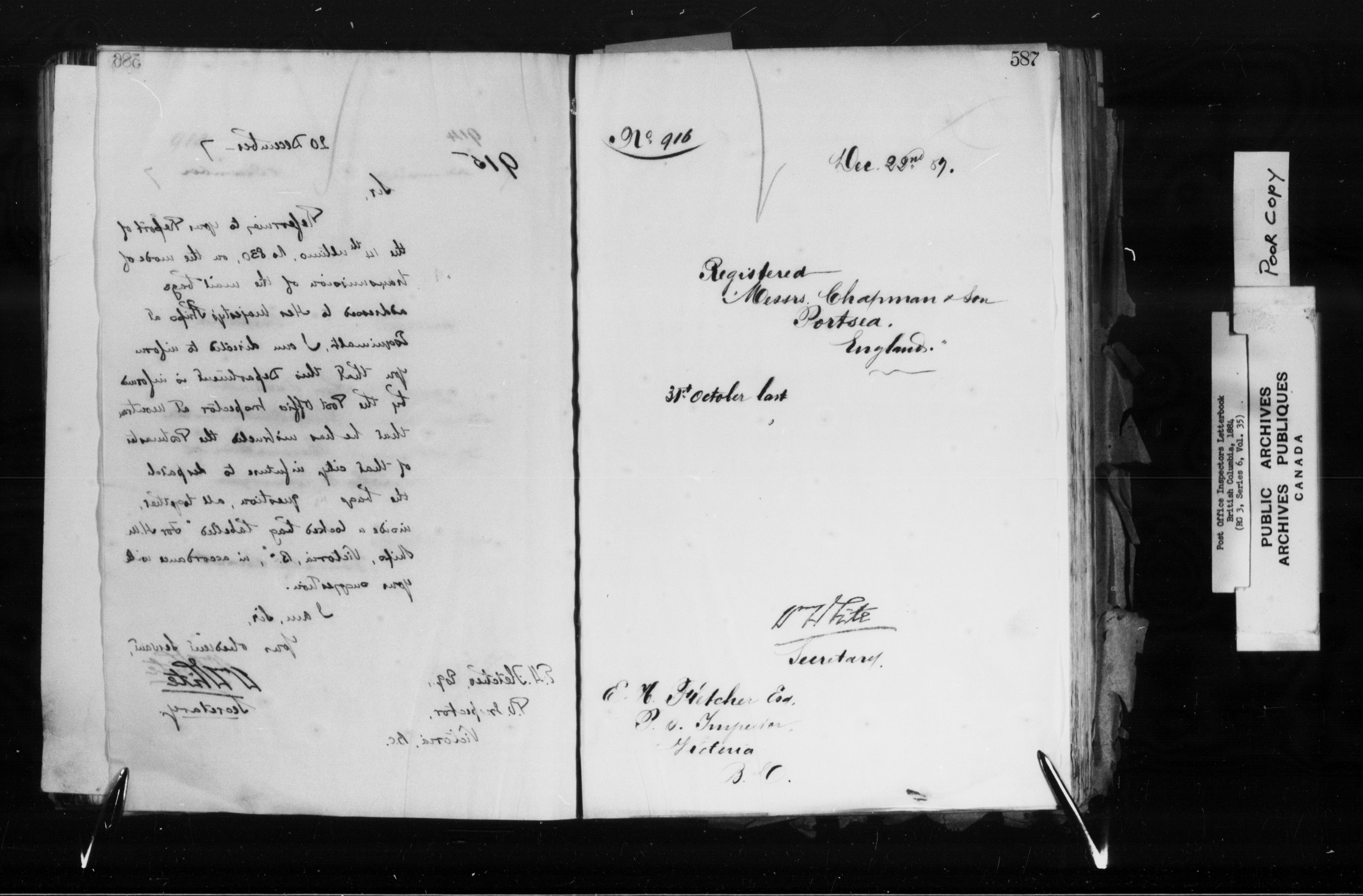 Correspondence from the Secretary to Post Office Inspectors - Letterbooks - British Columbia - 7234