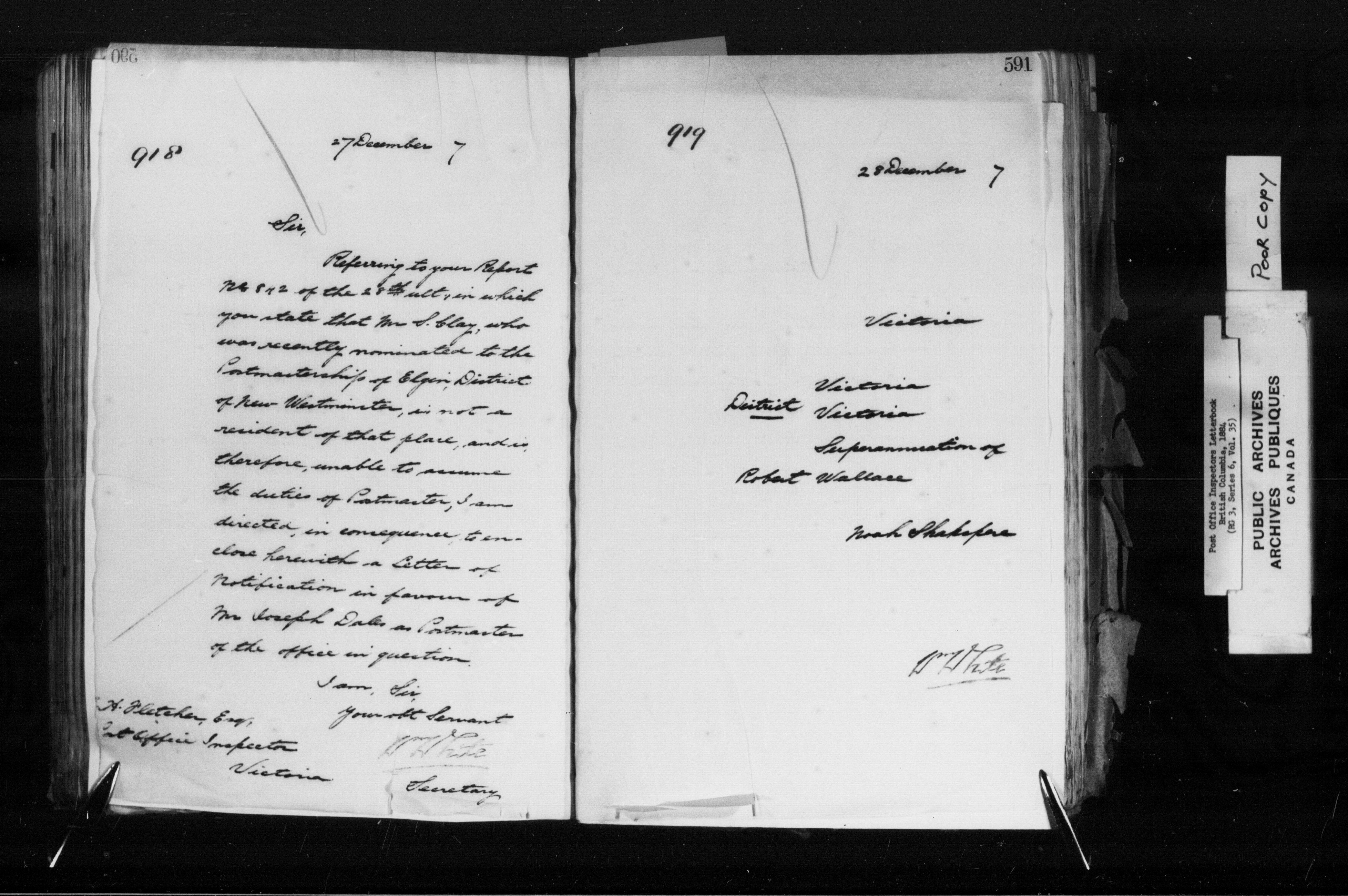Correspondence from the Secretary to Post Office Inspectors - Letterbooks - British Columbia - 7234