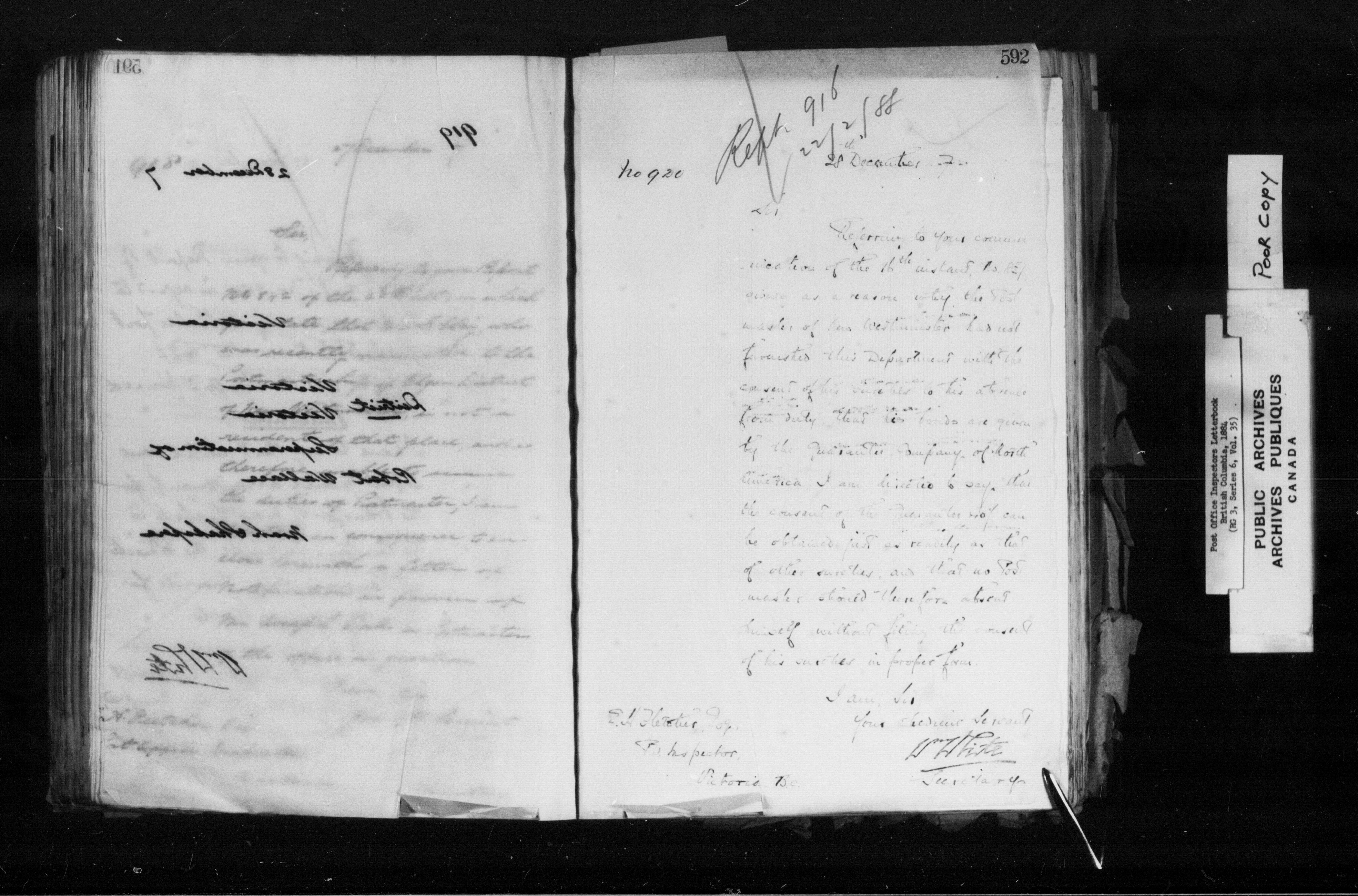 Correspondence from the Secretary to Post Office Inspectors - Letterbooks - British Columbia - 7234