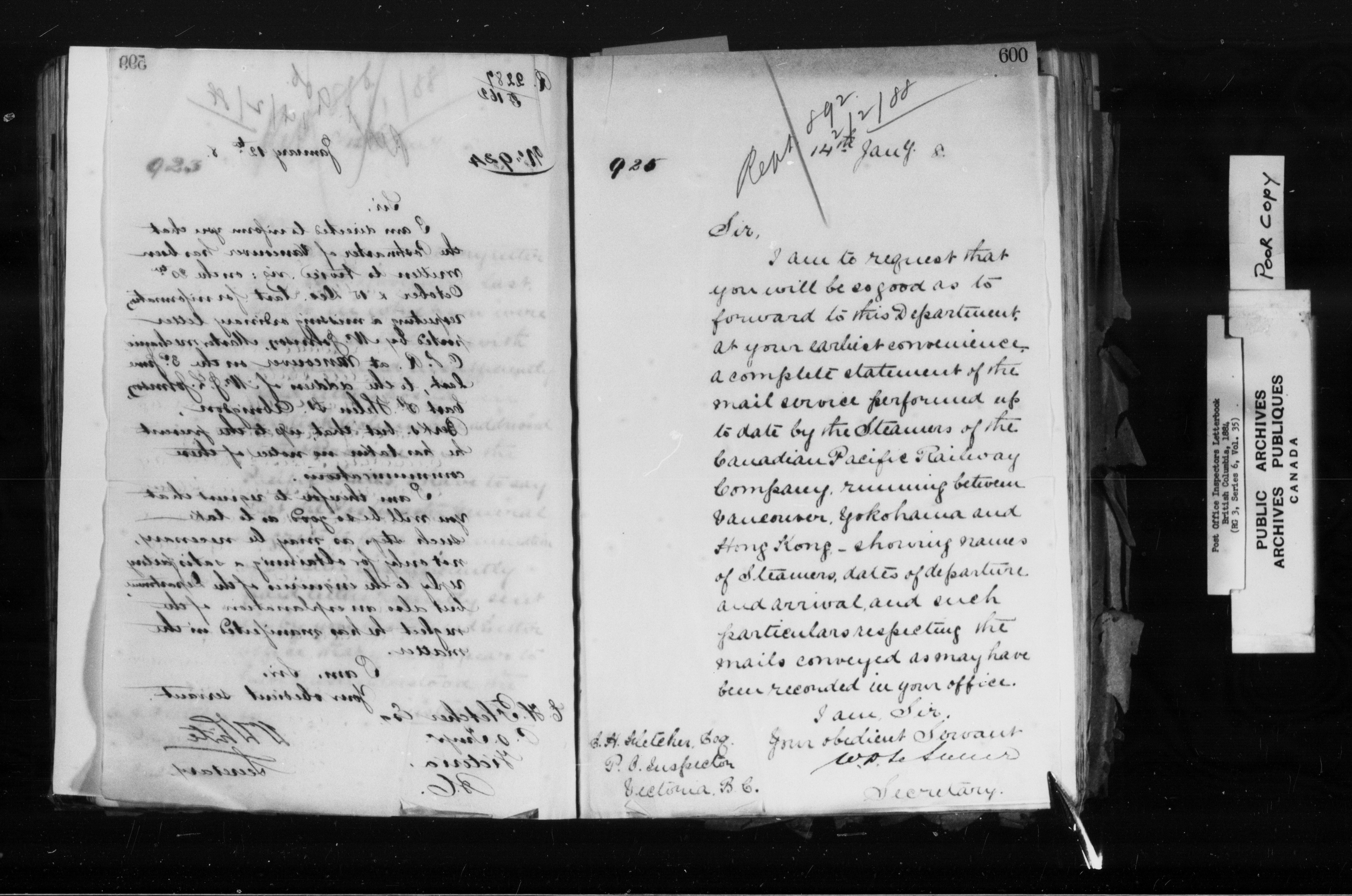 Correspondence from the Secretary to Post Office Inspectors - Letterbooks - British Columbia - 7234