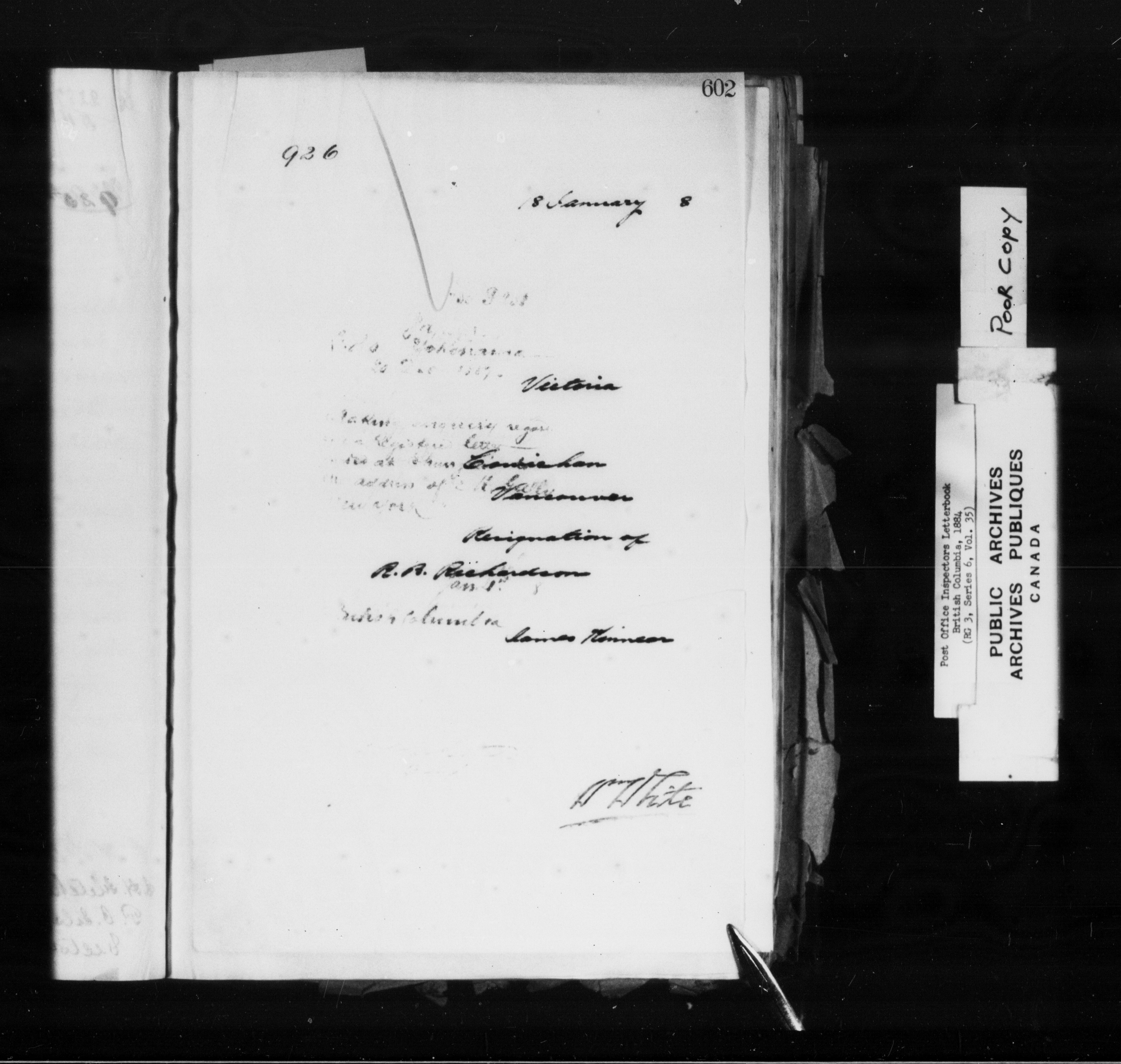 Correspondence from the Secretary to Post Office Inspectors - Letterbooks - British Columbia - 7234