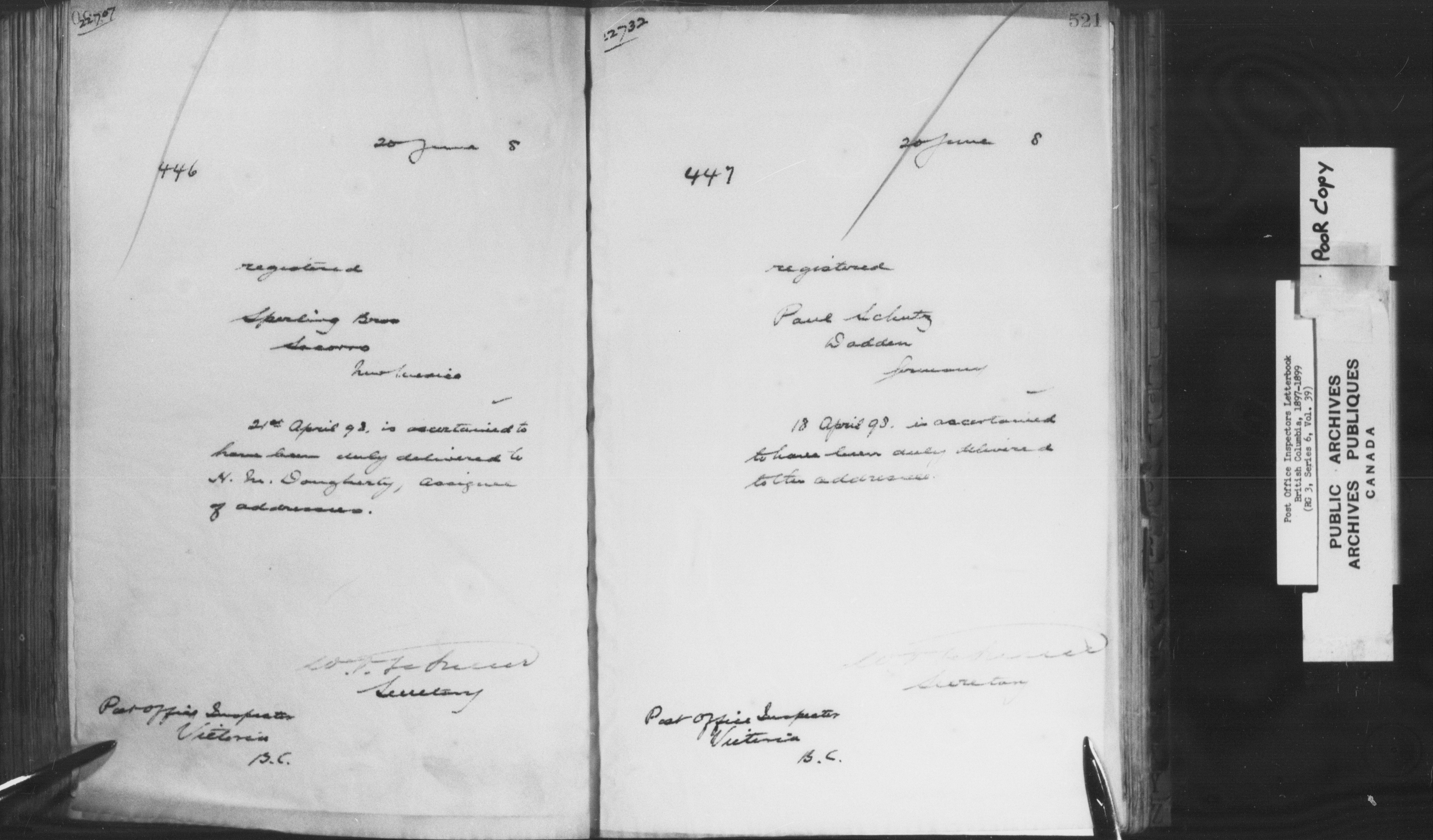 Correspondence from the Secretary to Post Office Inspectors - Letterbooks - British Columbia - 7236