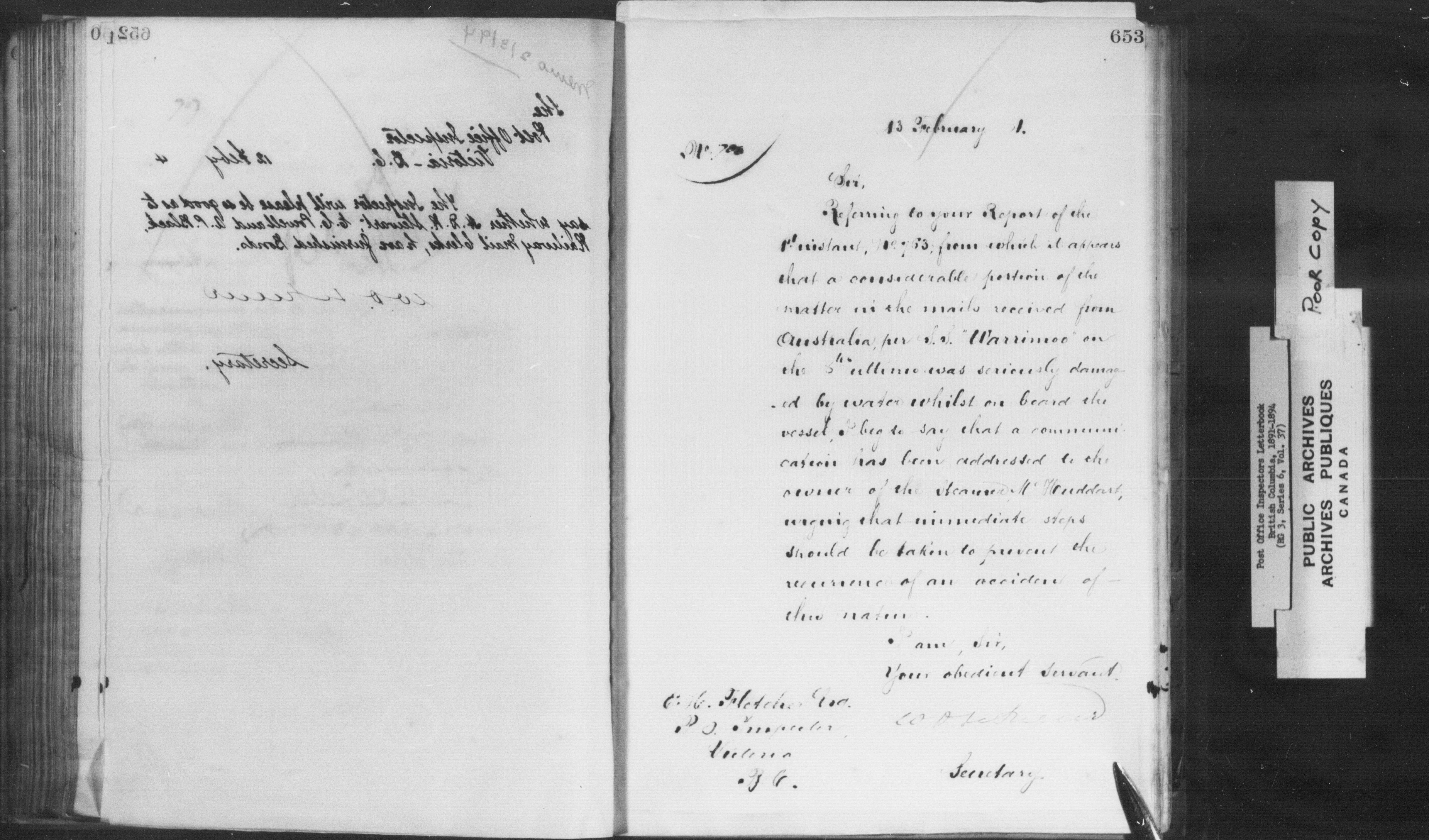 Correspondence from the Secretary to Post Office Inspectors - Letterbooks - British Columbia - 7236