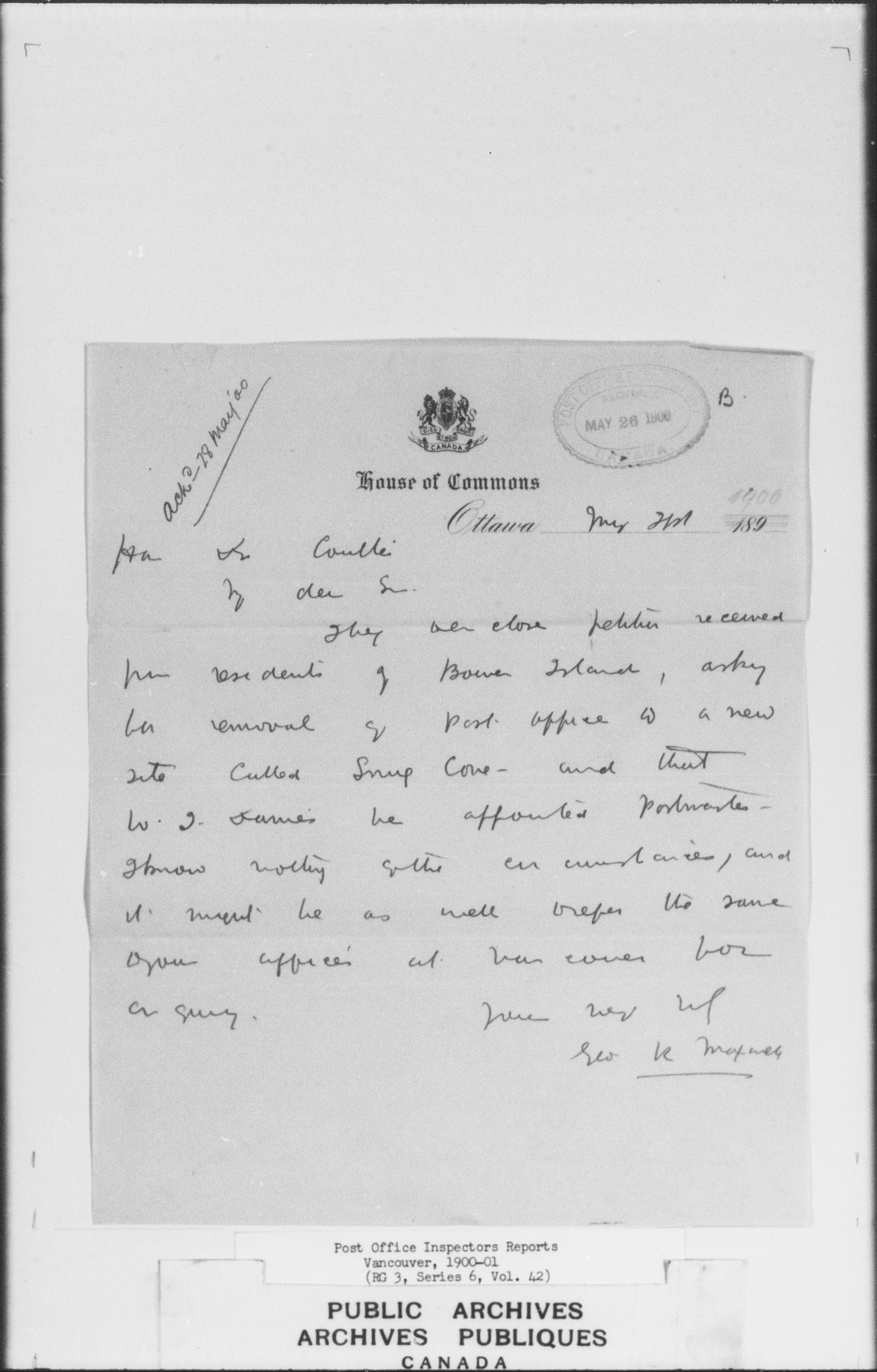 Correspondence from the Secretary to Post Office Inspectors : Letterbooks, Vancouver - 7238