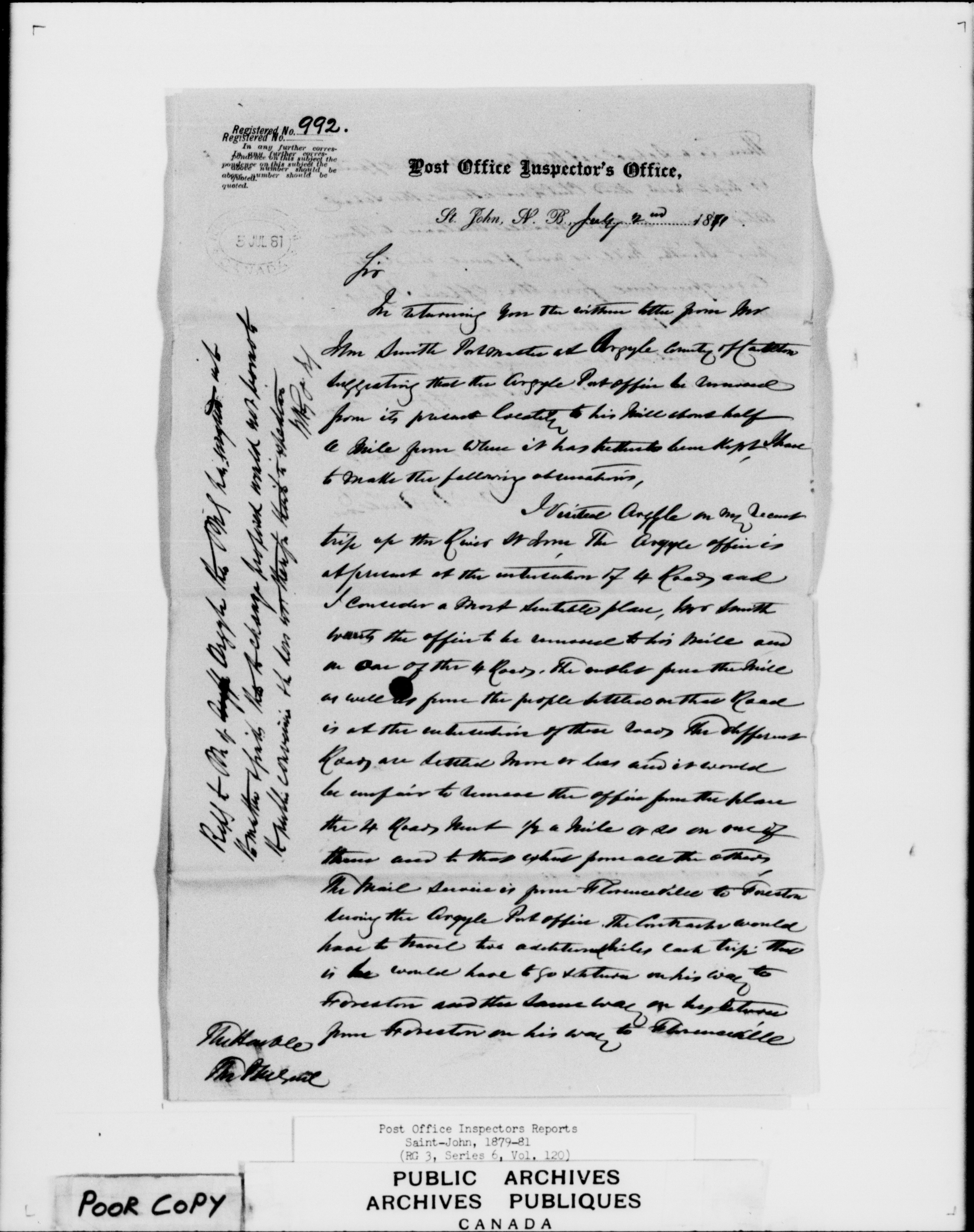 Post office Inspectors Reports - Saint John - 7240