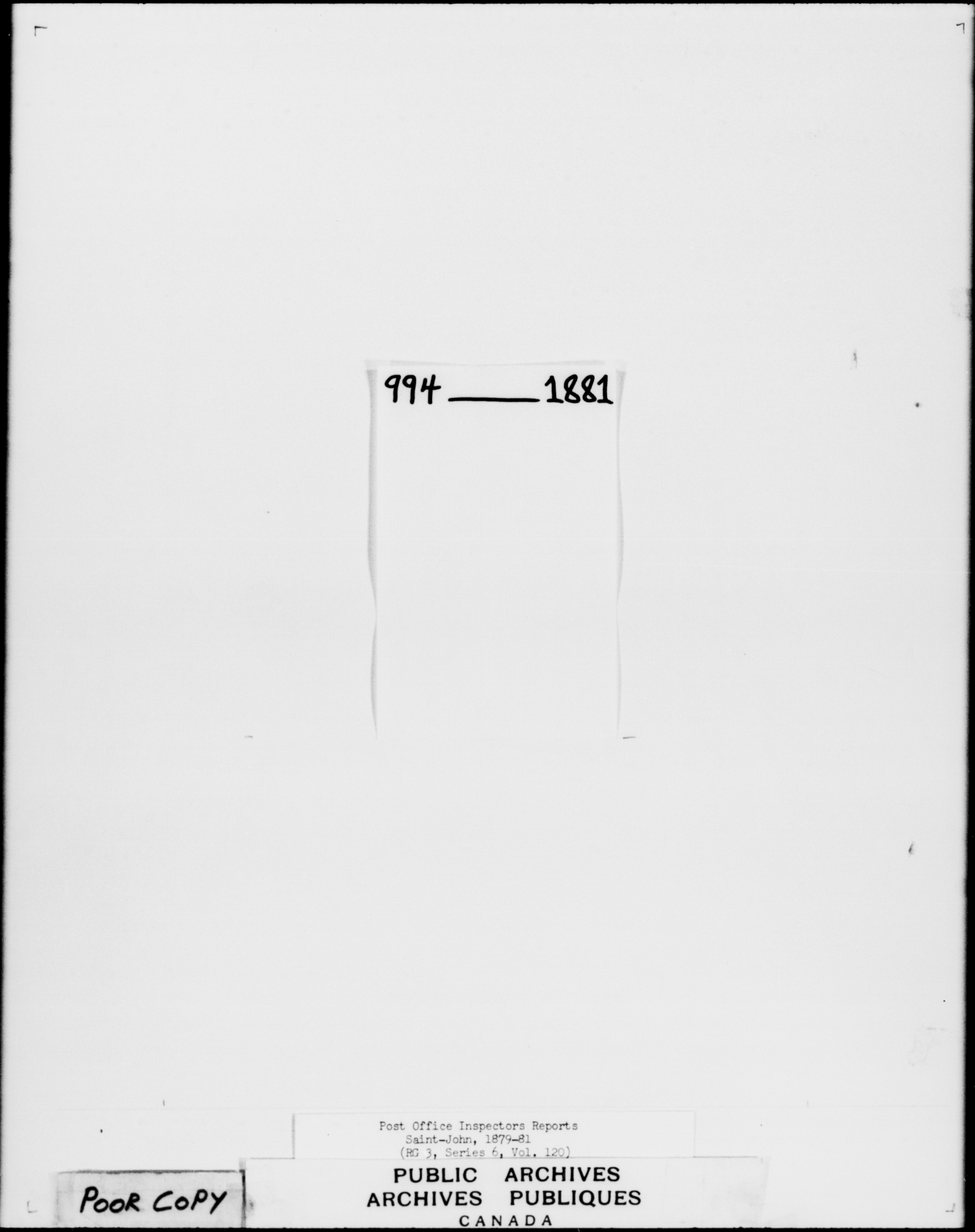Post office Inspectors Reports - Saint John - 7240