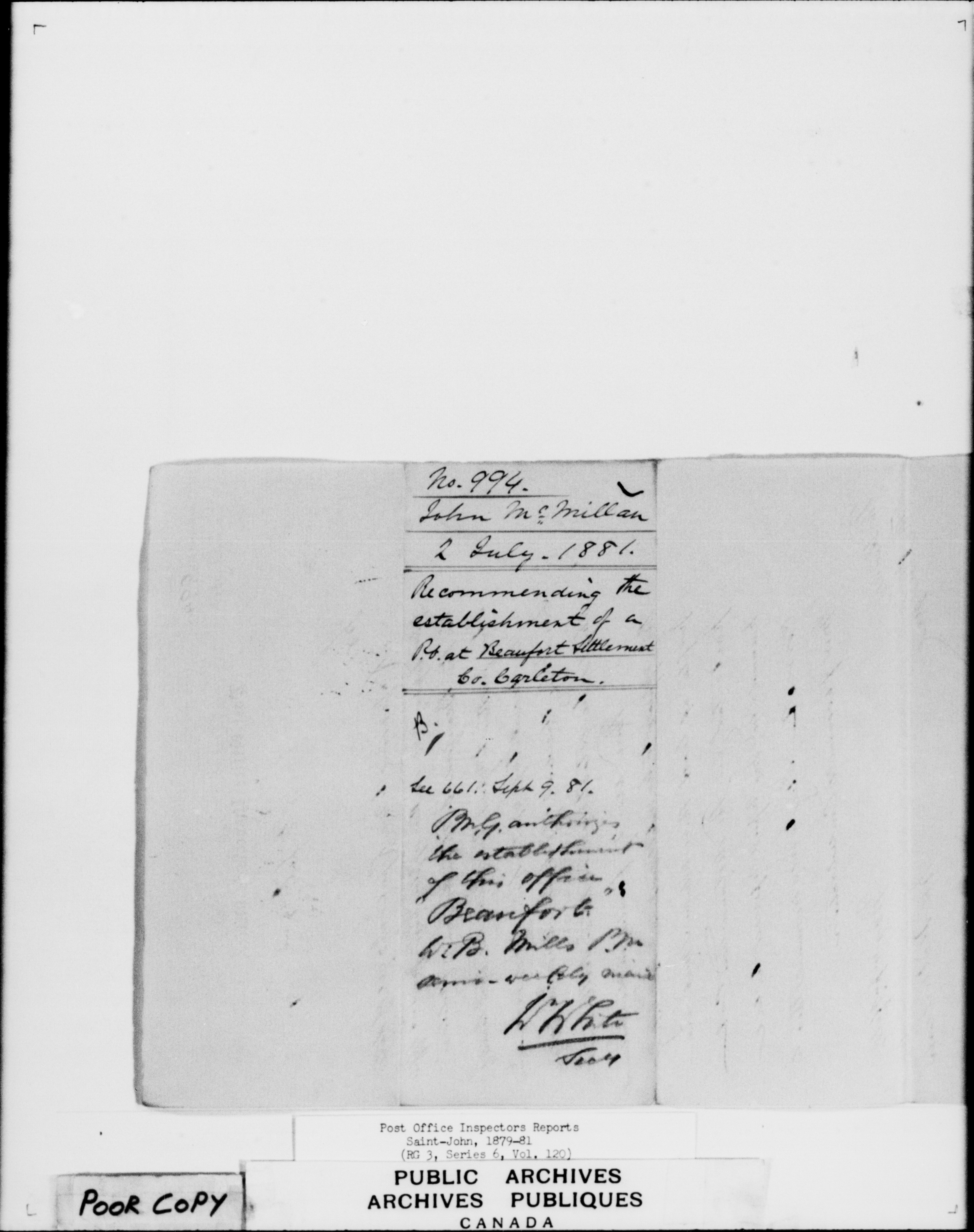 Post office Inspectors Reports - Saint John - 7240