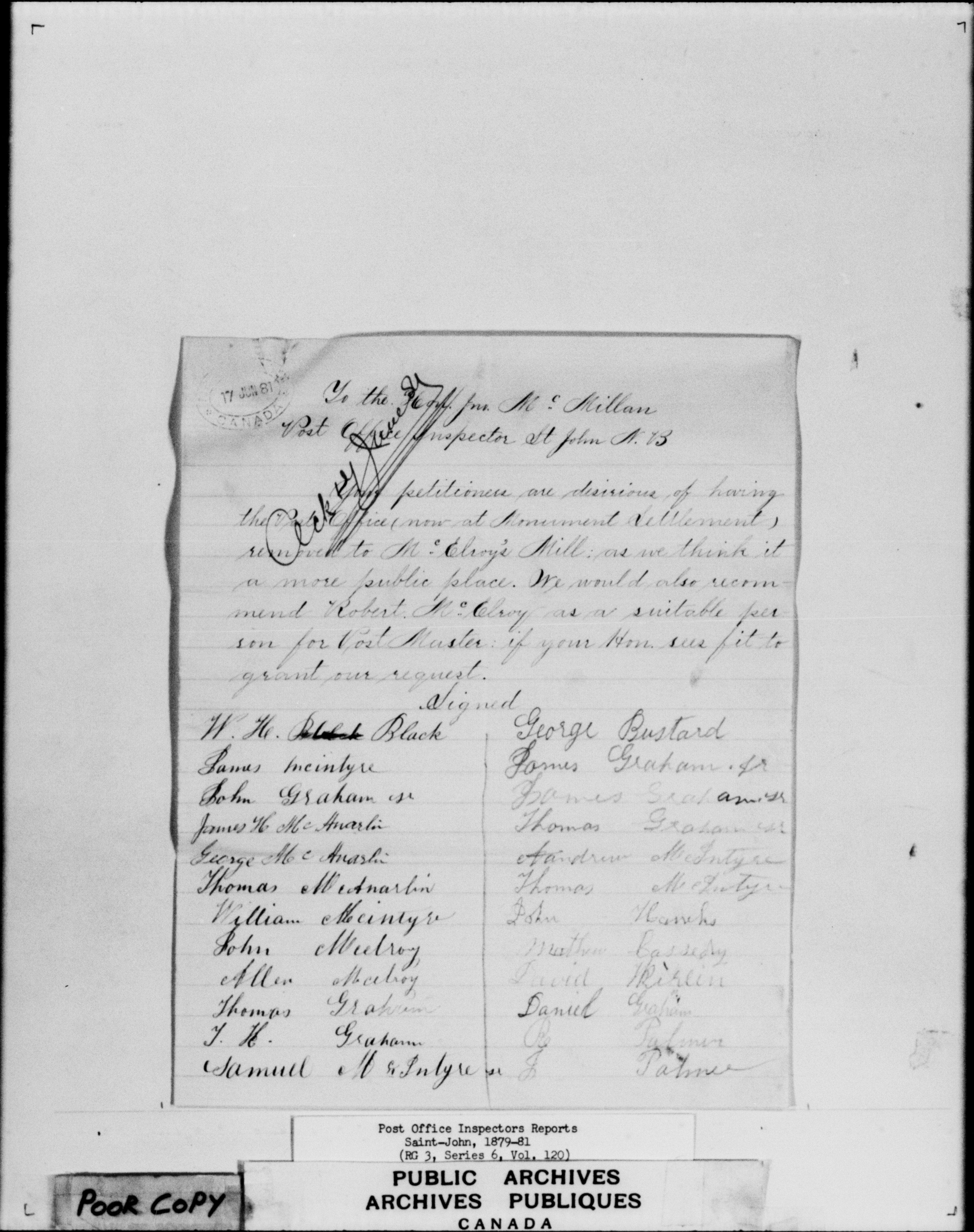 Post office Inspectors Reports - Saint John - 7240
