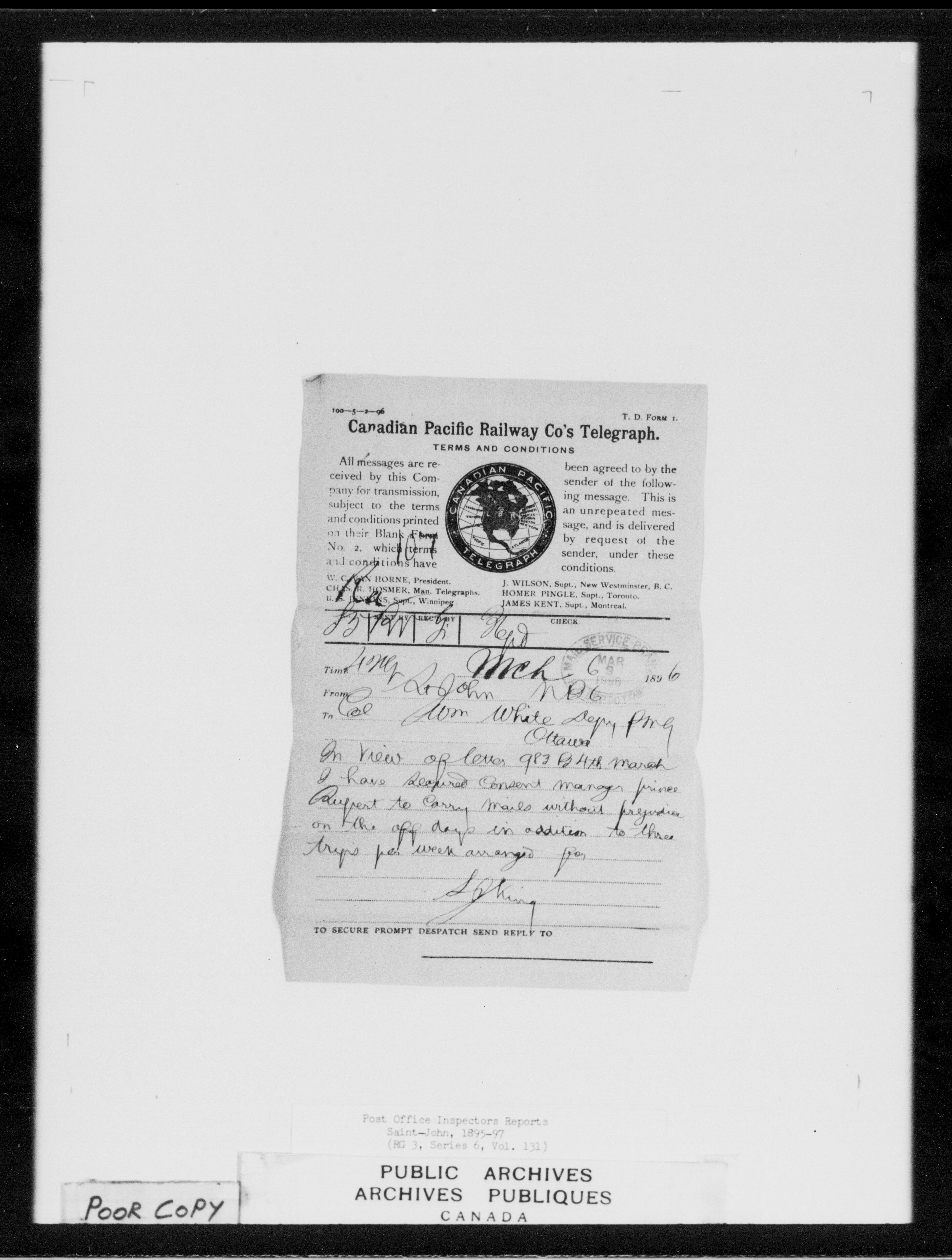 Post office Inspectors Reports - Saint John - C-7243