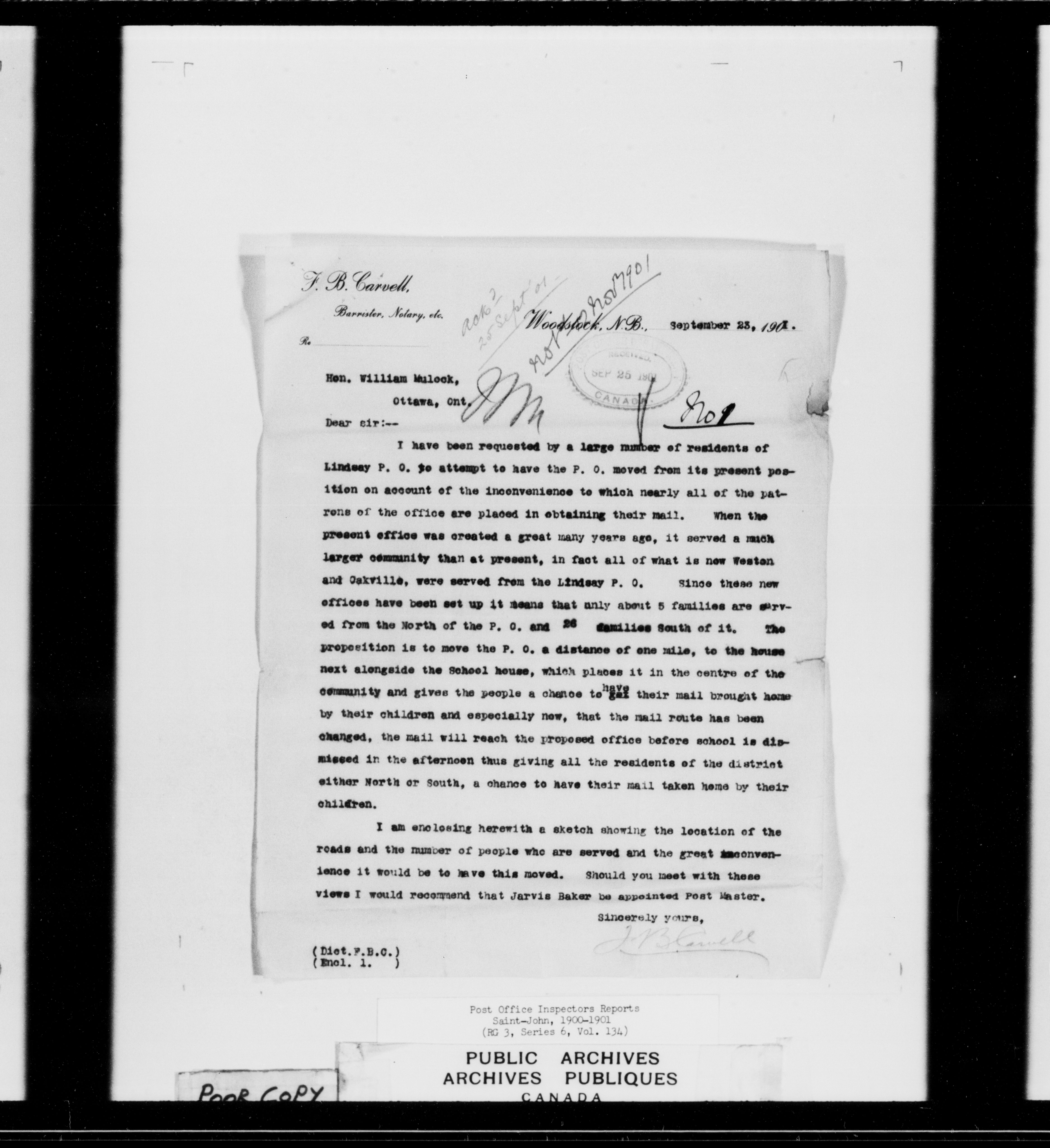 Correspondence from the Secretary to Post Office Inspectors Letterbooks, Saint John - 7244