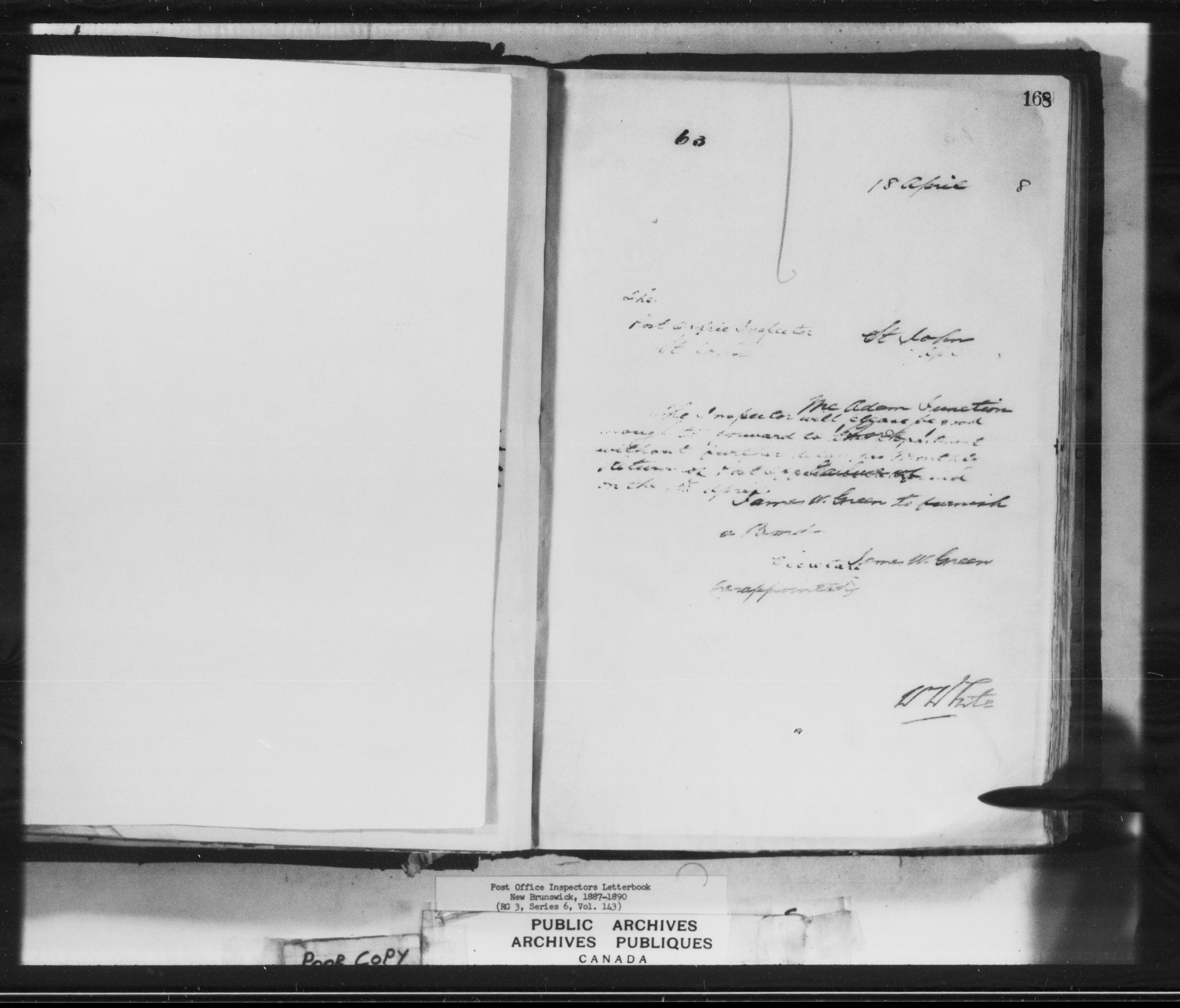 Correspondence from the Secretary to Post Office Inspectors Letterbooks, Saint John - 7247