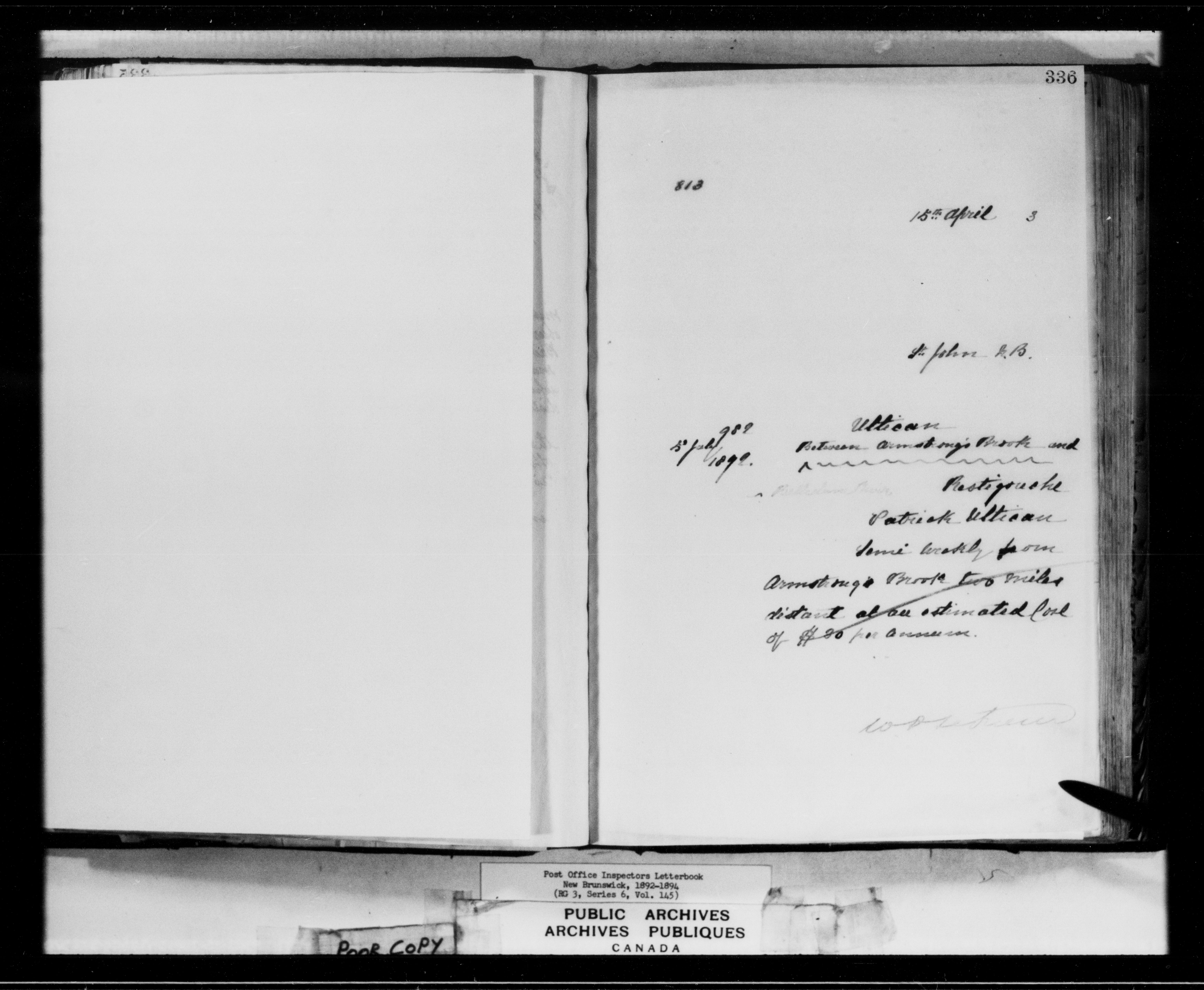 Correspondence from the Secretary to Post Office Inspectors Letterbooks, Saint John - 7248