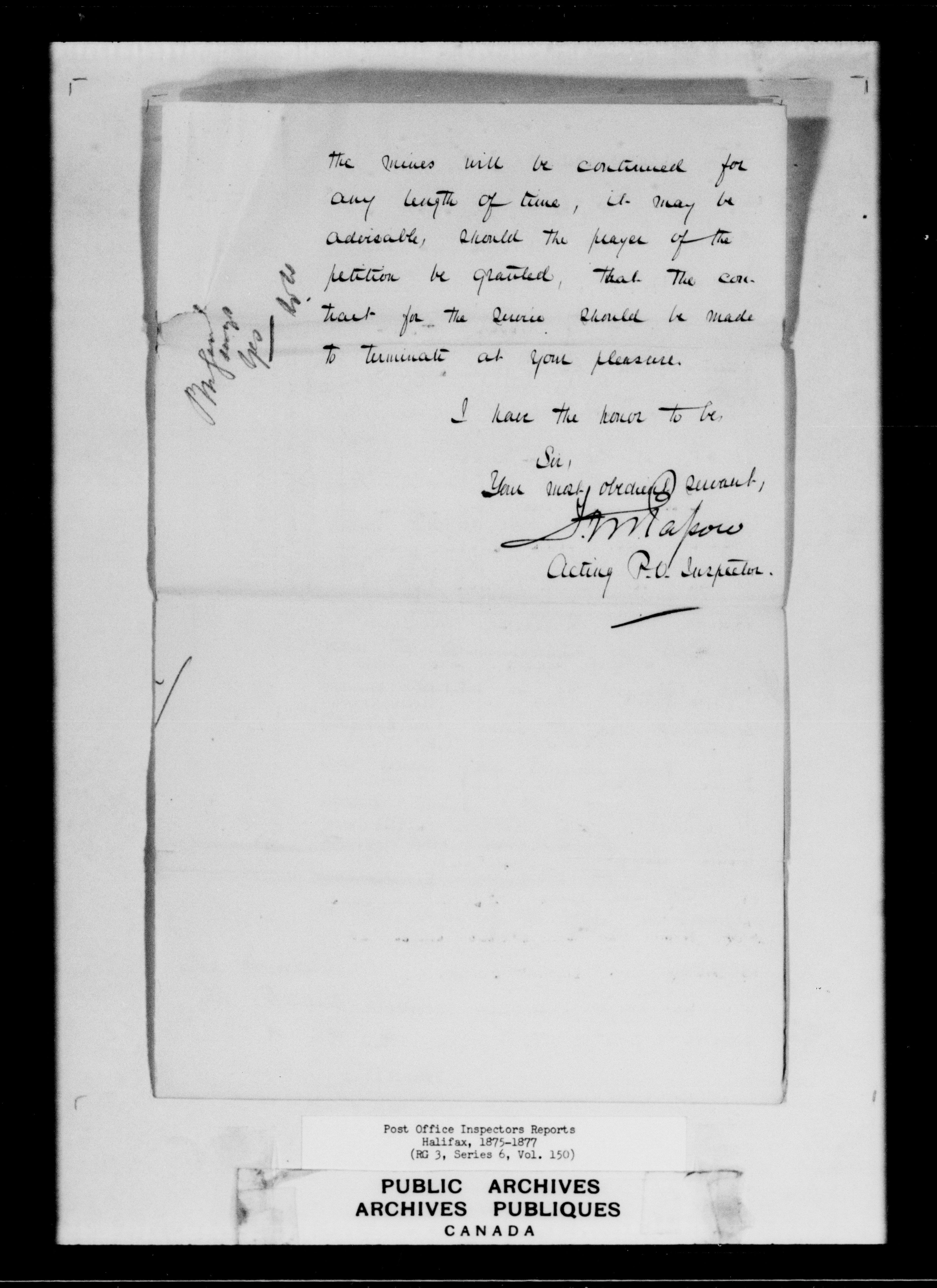 Correspondence from the Secretary to Post Office Inspectors Letterbooks, Saint John - 7250