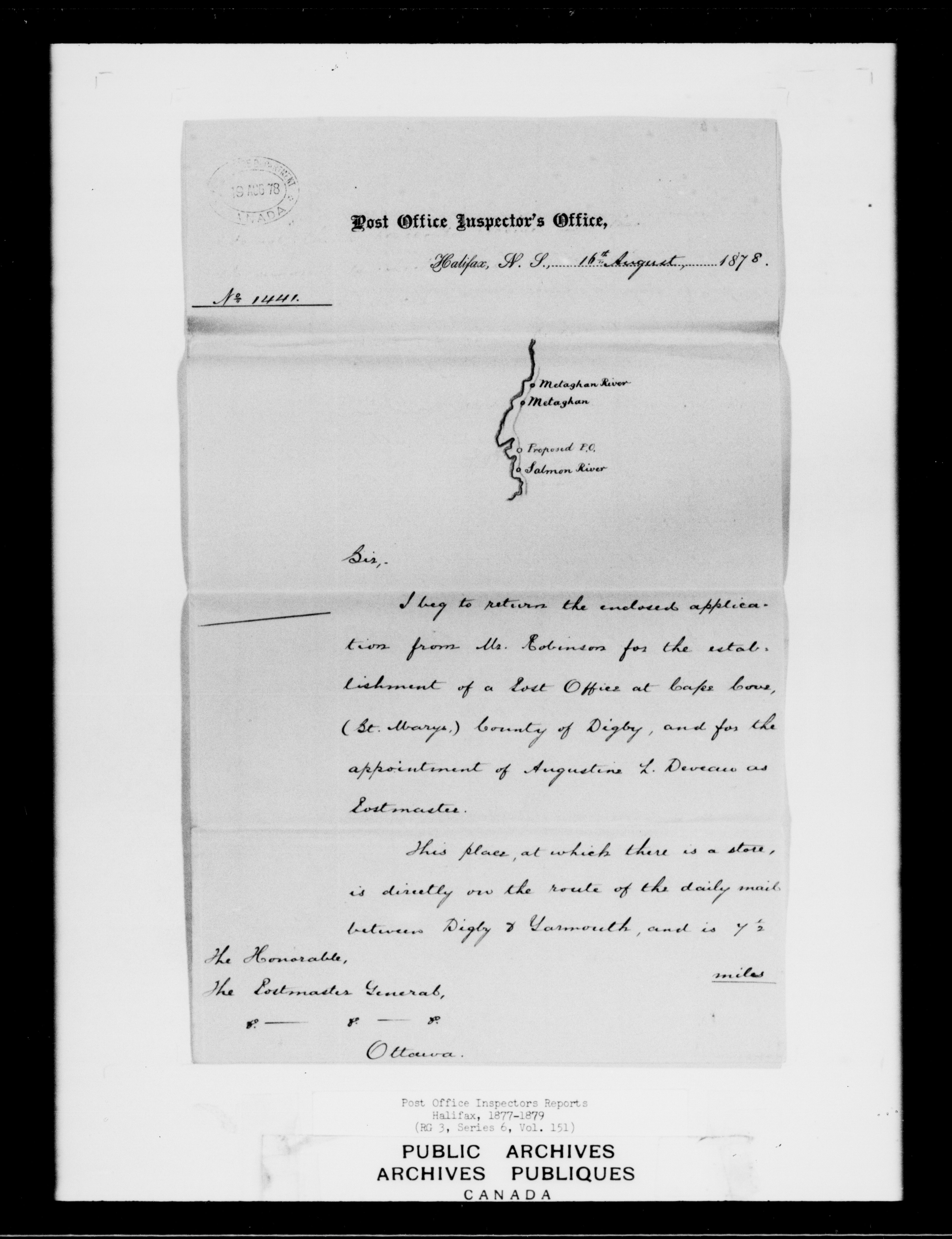 Correspondence from the Secretary to Post Office Inspectors Letterbooks, Saint John - 7250