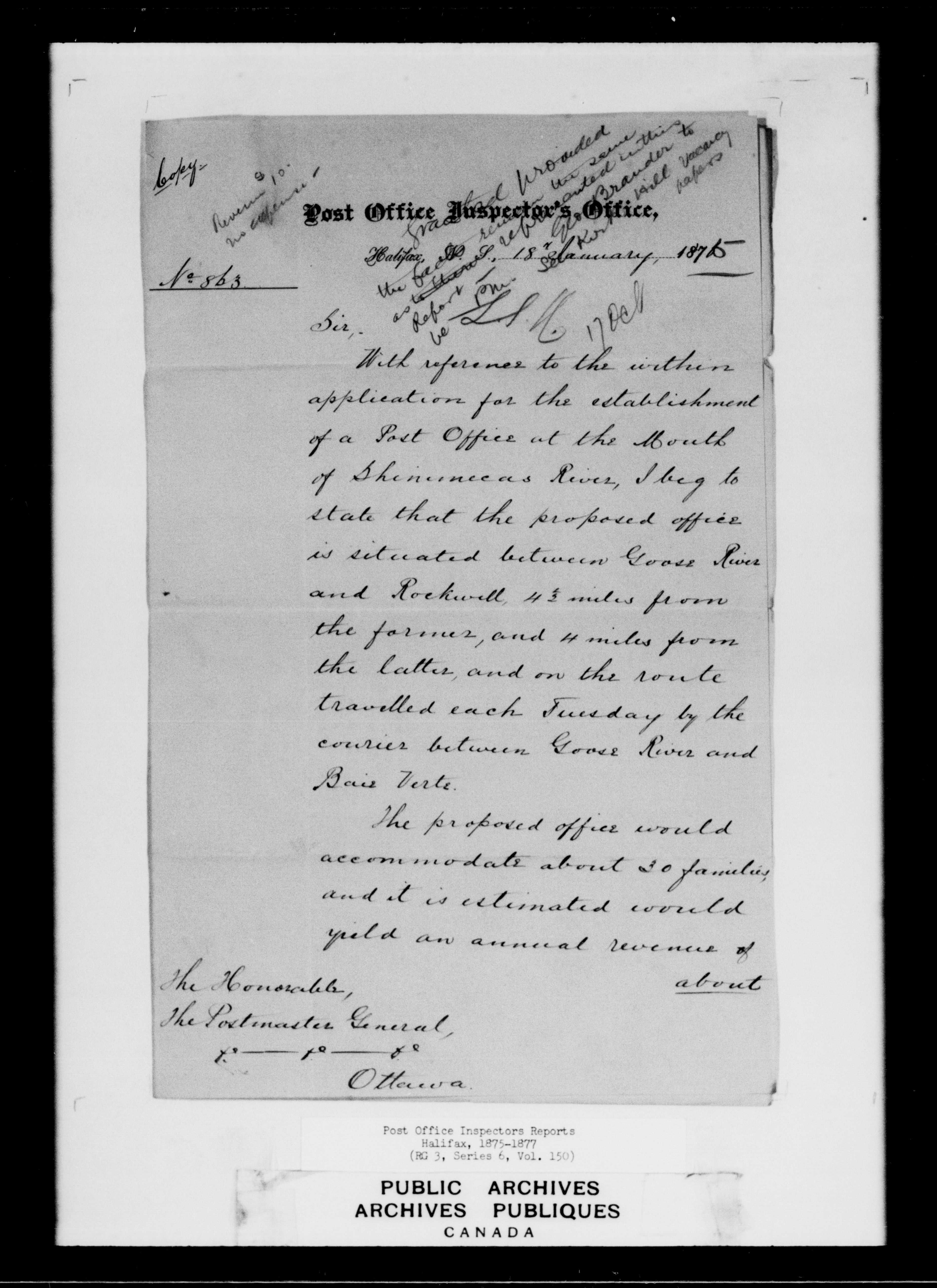 Correspondence from the Secretary to Post Office Inspectors Letterbooks, Saint John - 7250