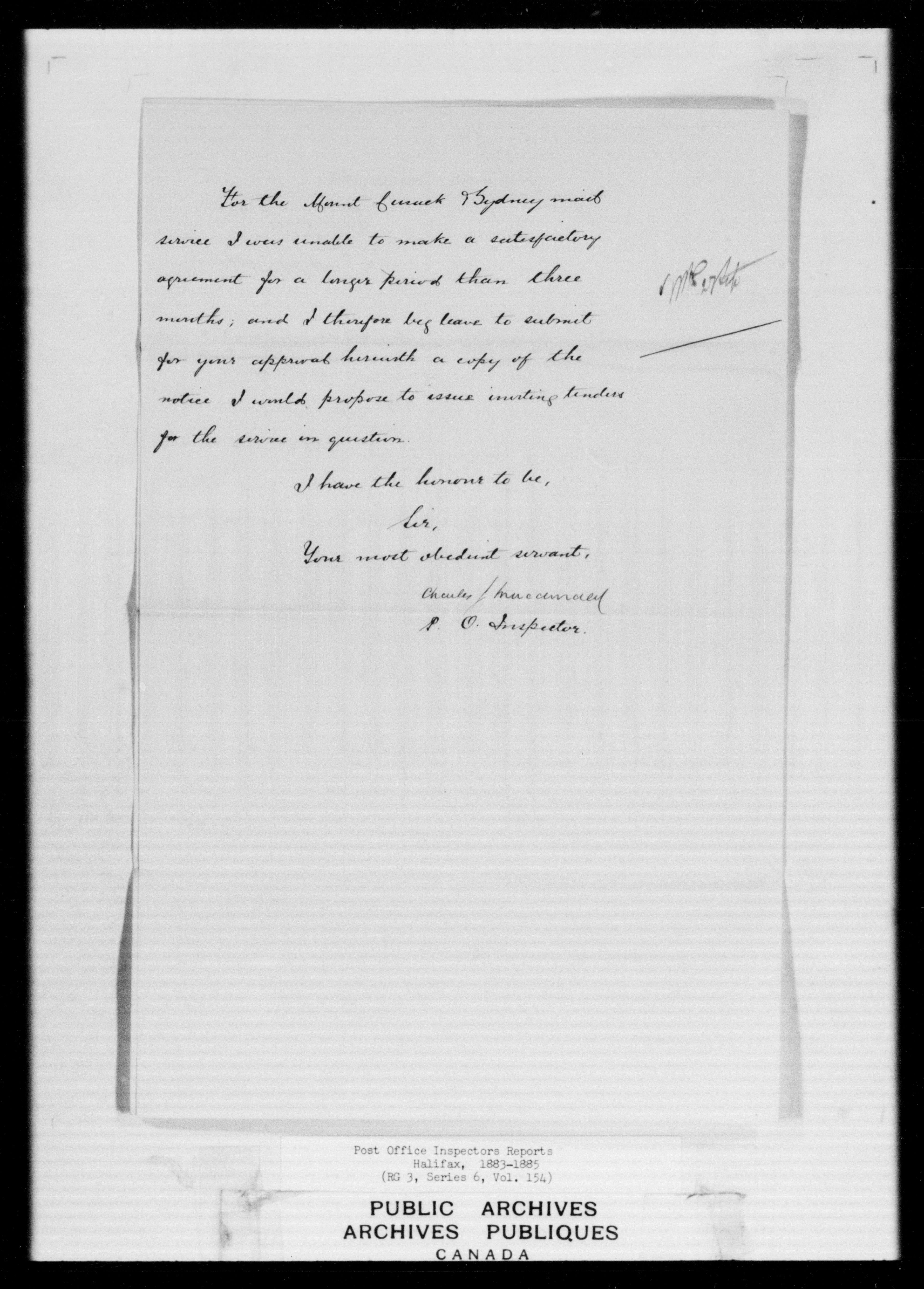 Post Office Inspectors Reports - Halifax and Charlottetown - 7251