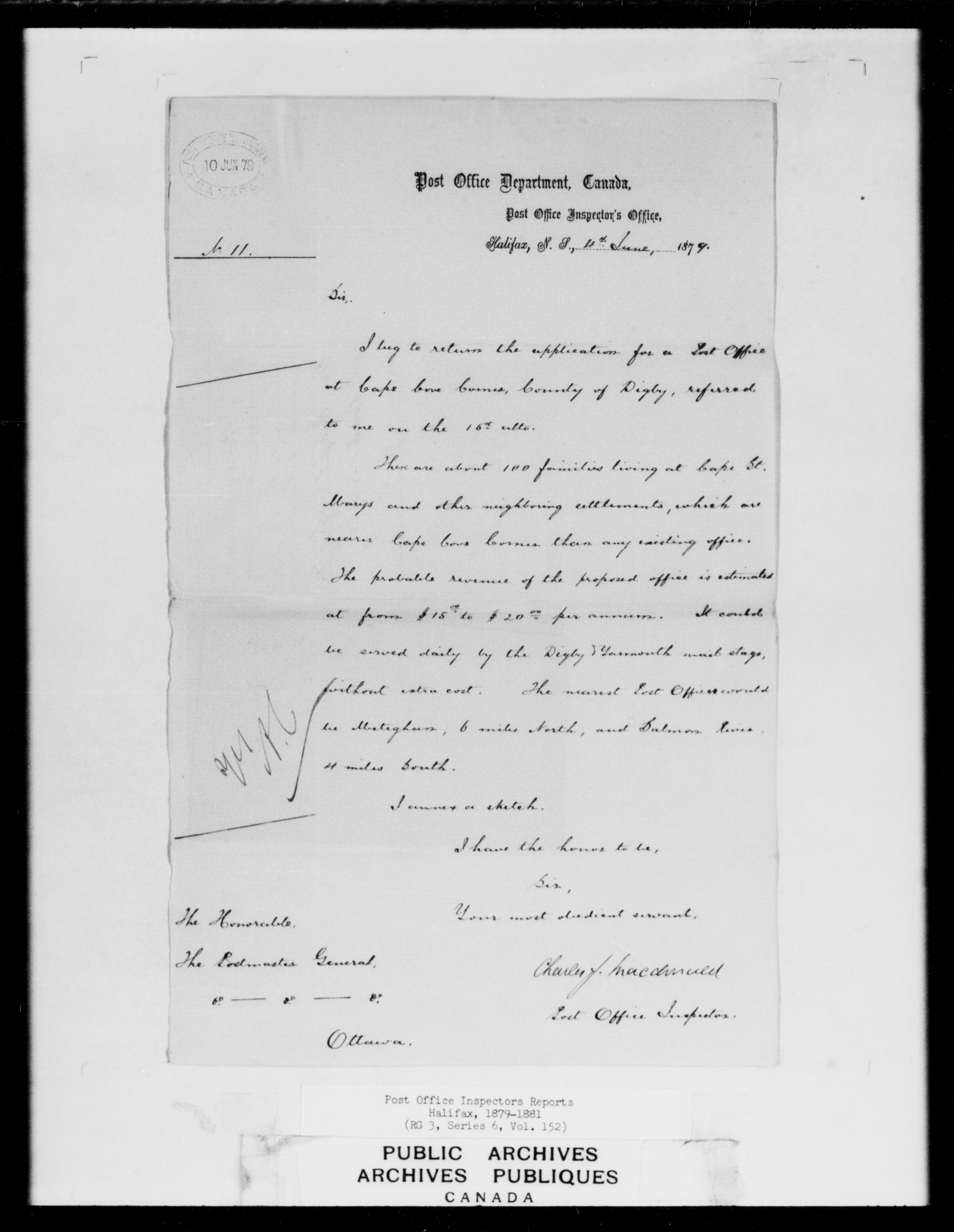 Post Office Inspectors Reports - Halifax and Charlottetown - 7251