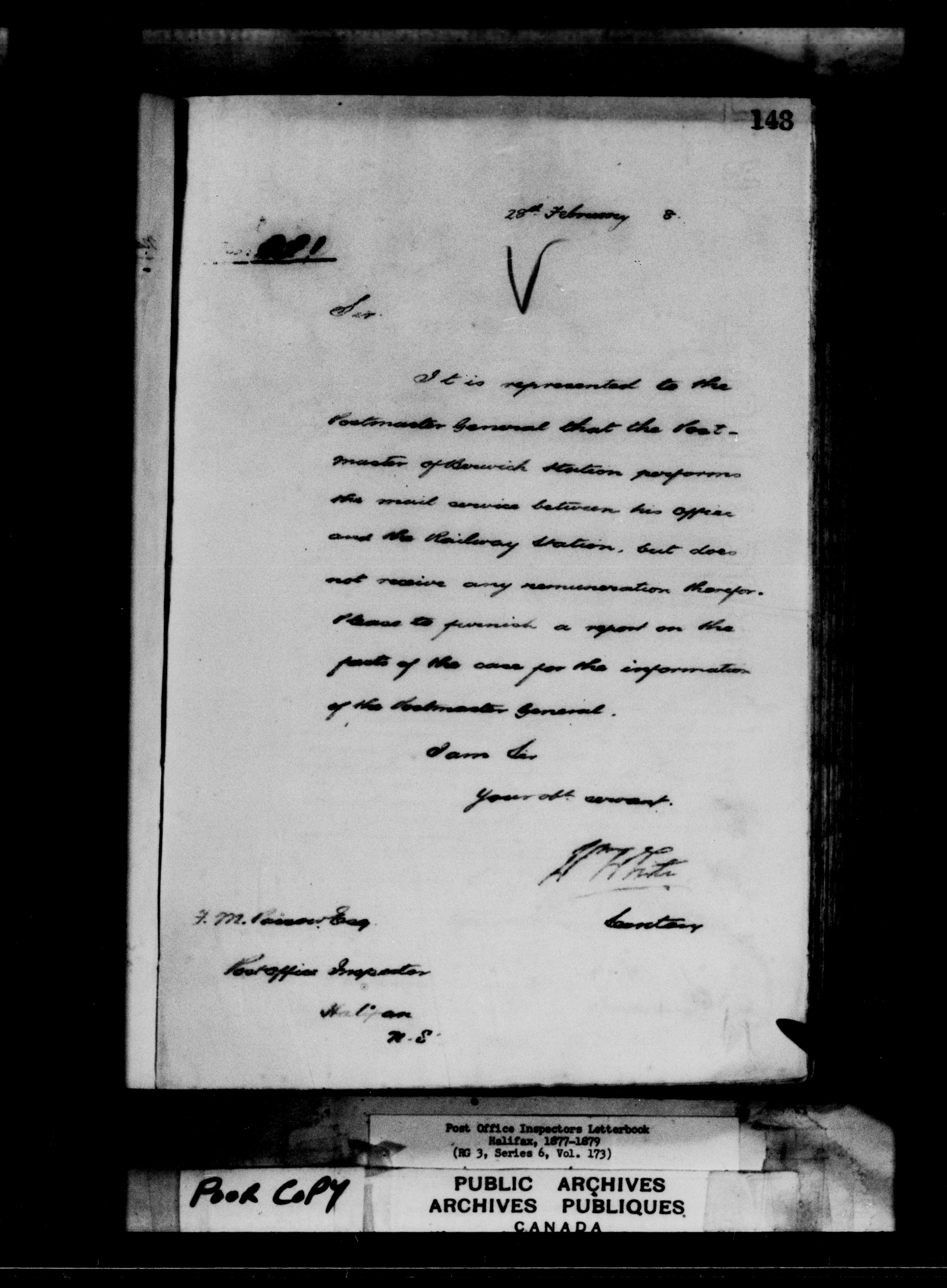 Correspondence from the Secretary to Post Office Inspectors : Letterbooks, Halifax - 7257