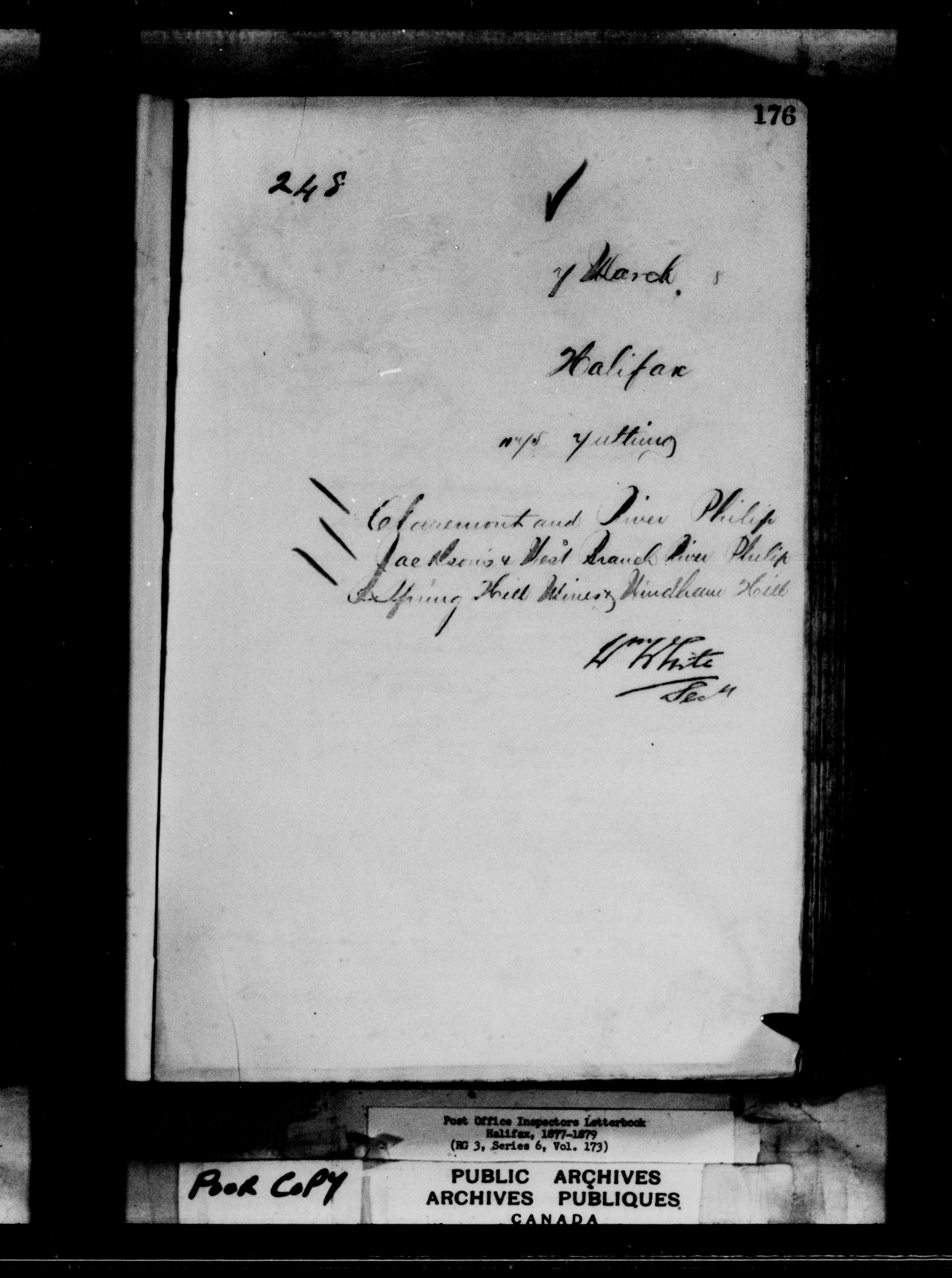Correspondence from the Secretary to Post Office Inspectors : Letterbooks, Halifax - 7257