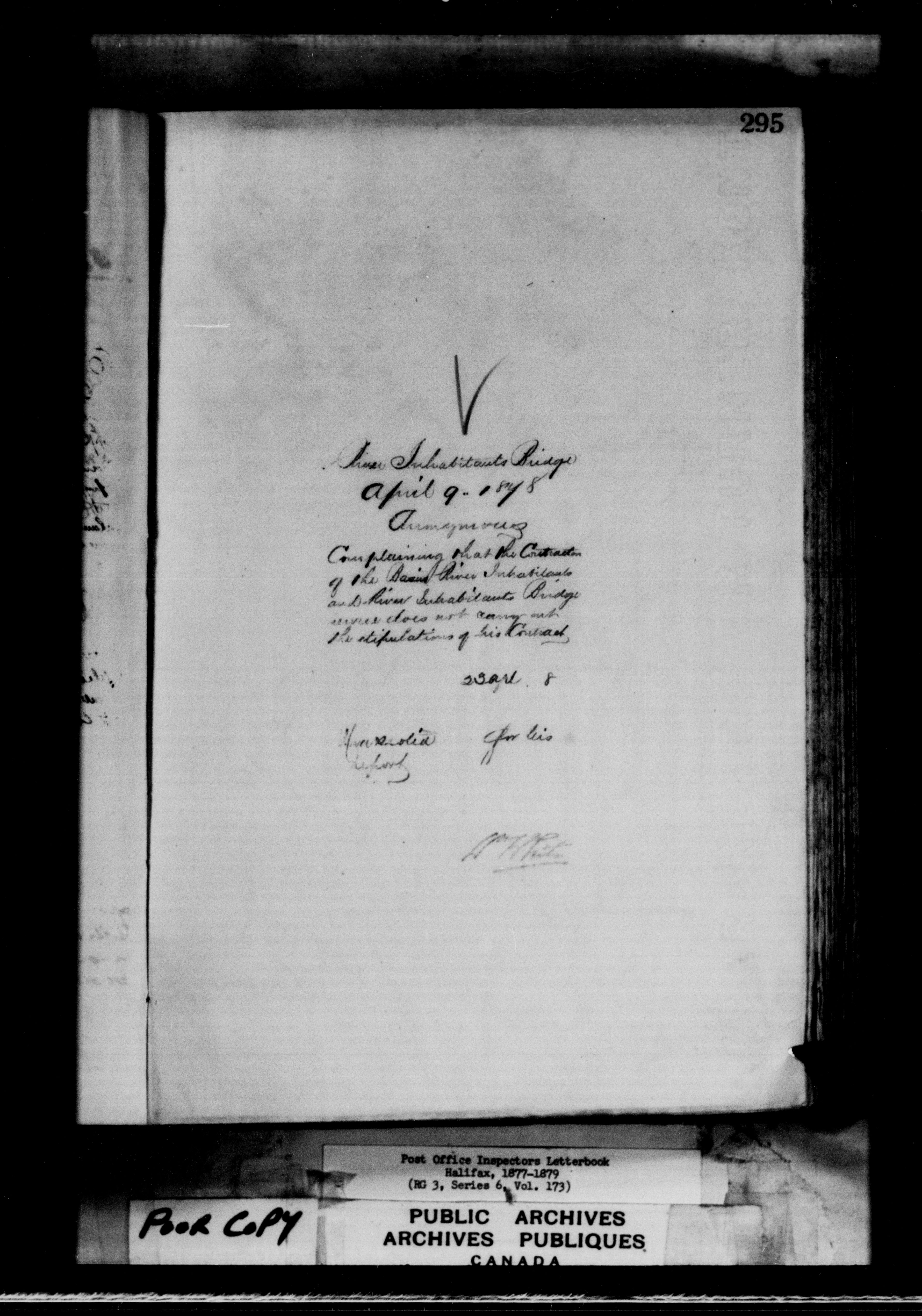 Correspondence from the Secretary to Post Office Inspectors : Letterbooks, Halifax - 7258