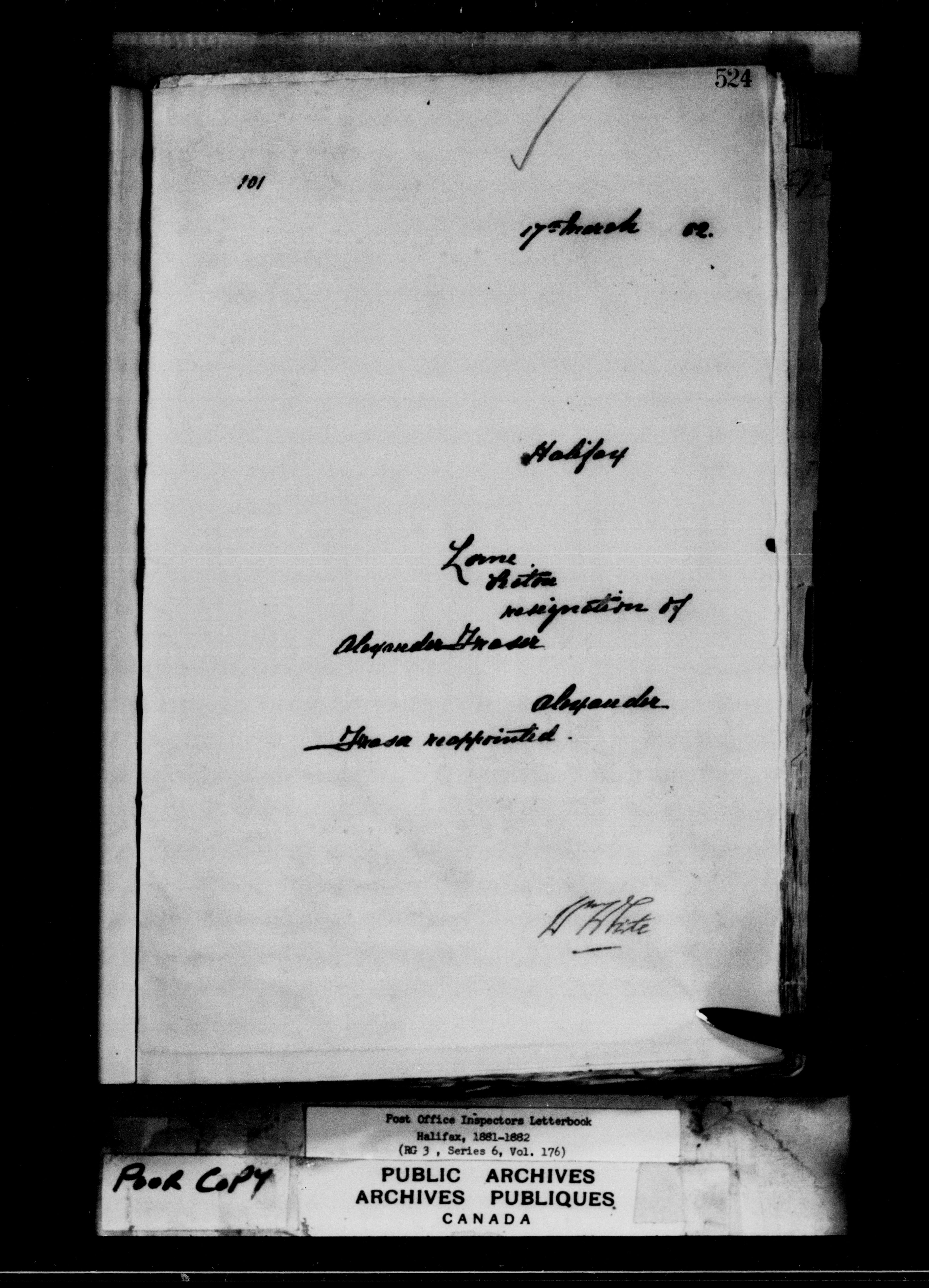 Correspondence from the Secretary to Post Office Inspectors : Letterbooks, Halifax - 7259