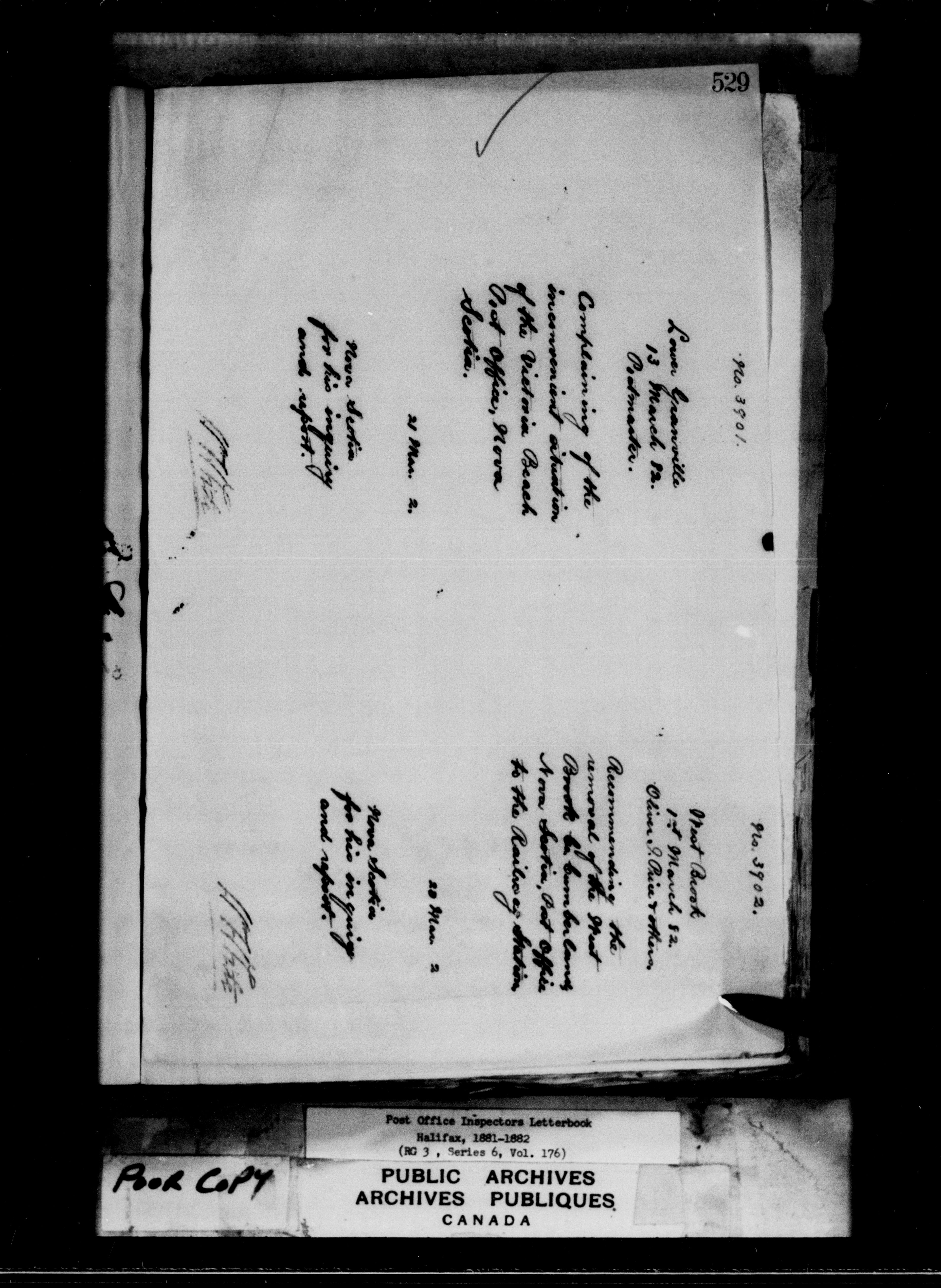 Correspondence from the Secretary to Post Office Inspectors : Letterbooks, Halifax - 7259