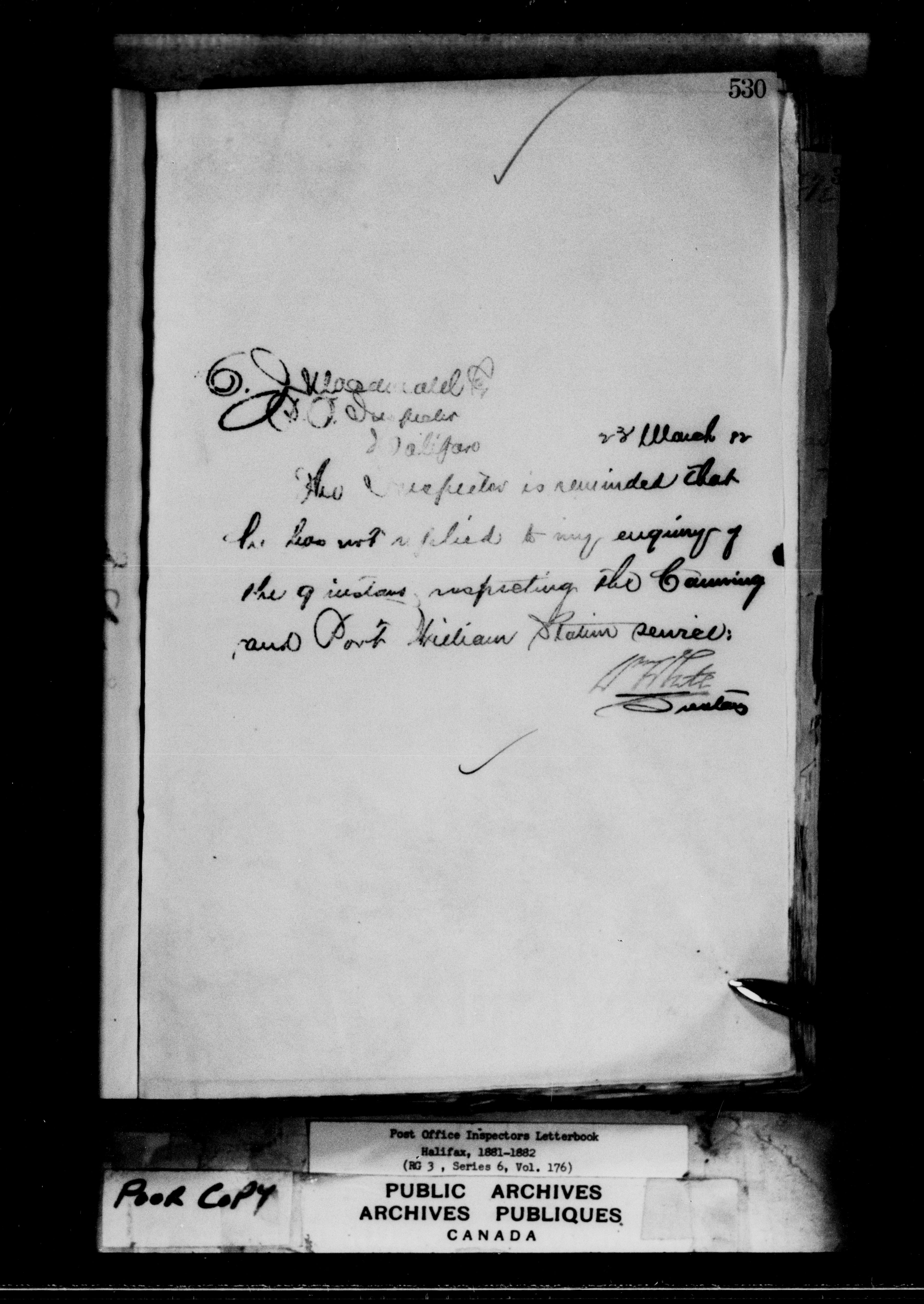Correspondence from the Secretary to Post Office Inspectors : Letterbooks, Halifax - 7259