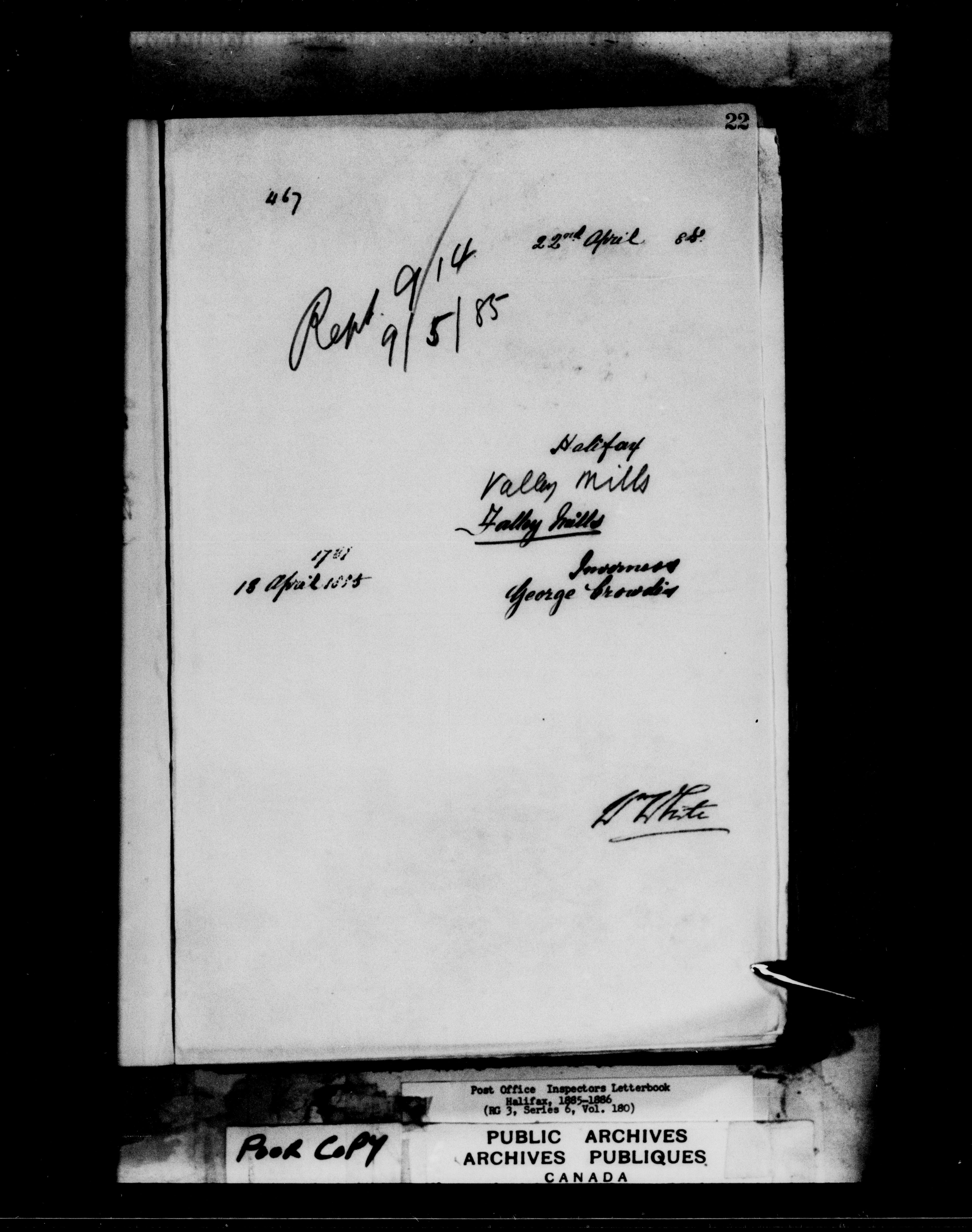 Correspondence from the Secretary to Post Office Inspectors : Letterbooks, Halifax - 7260