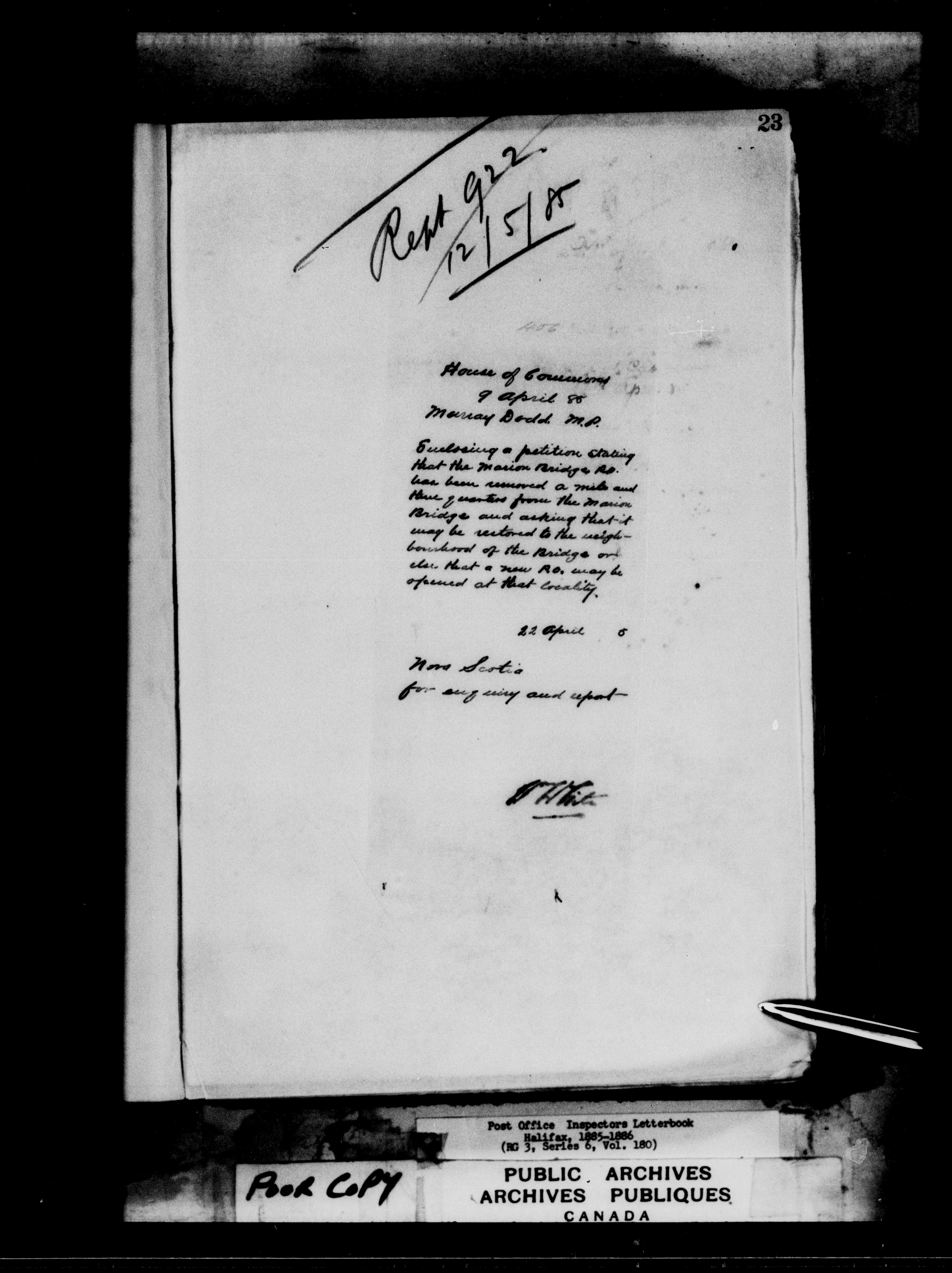 Correspondence from the Secretary to Post Office Inspectors : Letterbooks, Halifax - 7260