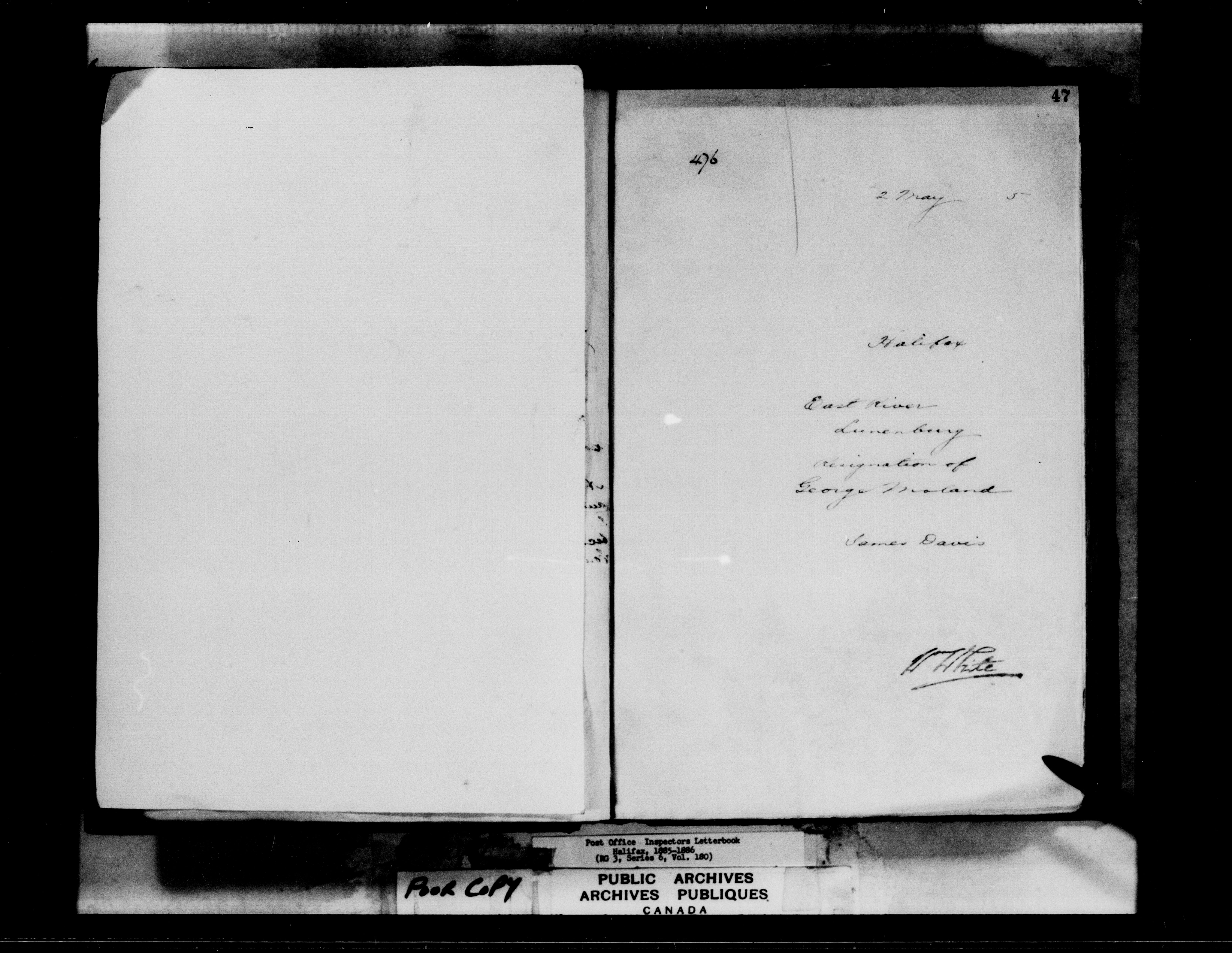 Correspondence from the Secretary to Post Office Inspectors : Letterbooks, Halifax - 7260