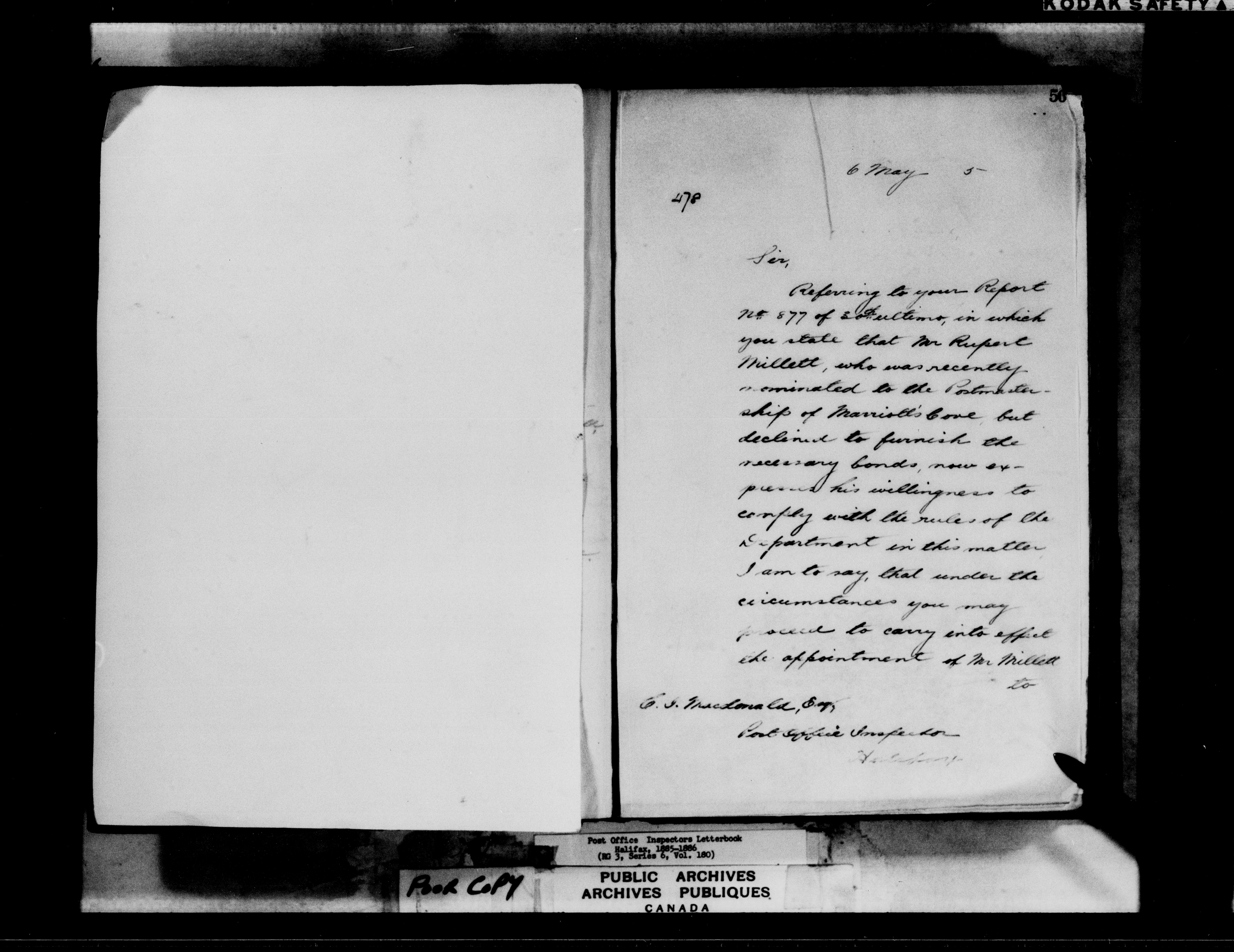 Correspondence from the Secretary to Post Office Inspectors : Letterbooks, Halifax - 7260