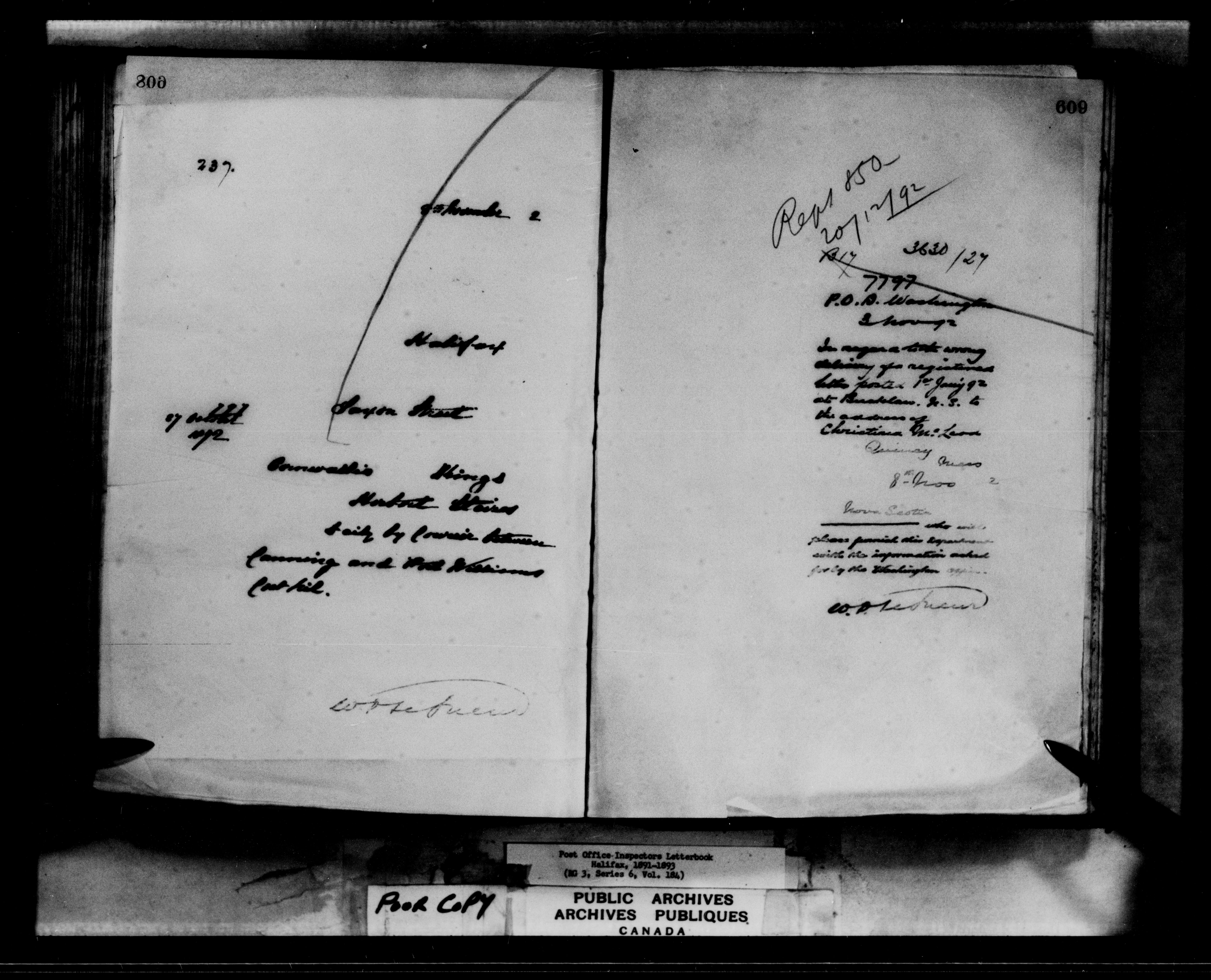 Correspondence from the Secretary to Post Office Inspectors : Letterbooks, Halifax - 7261