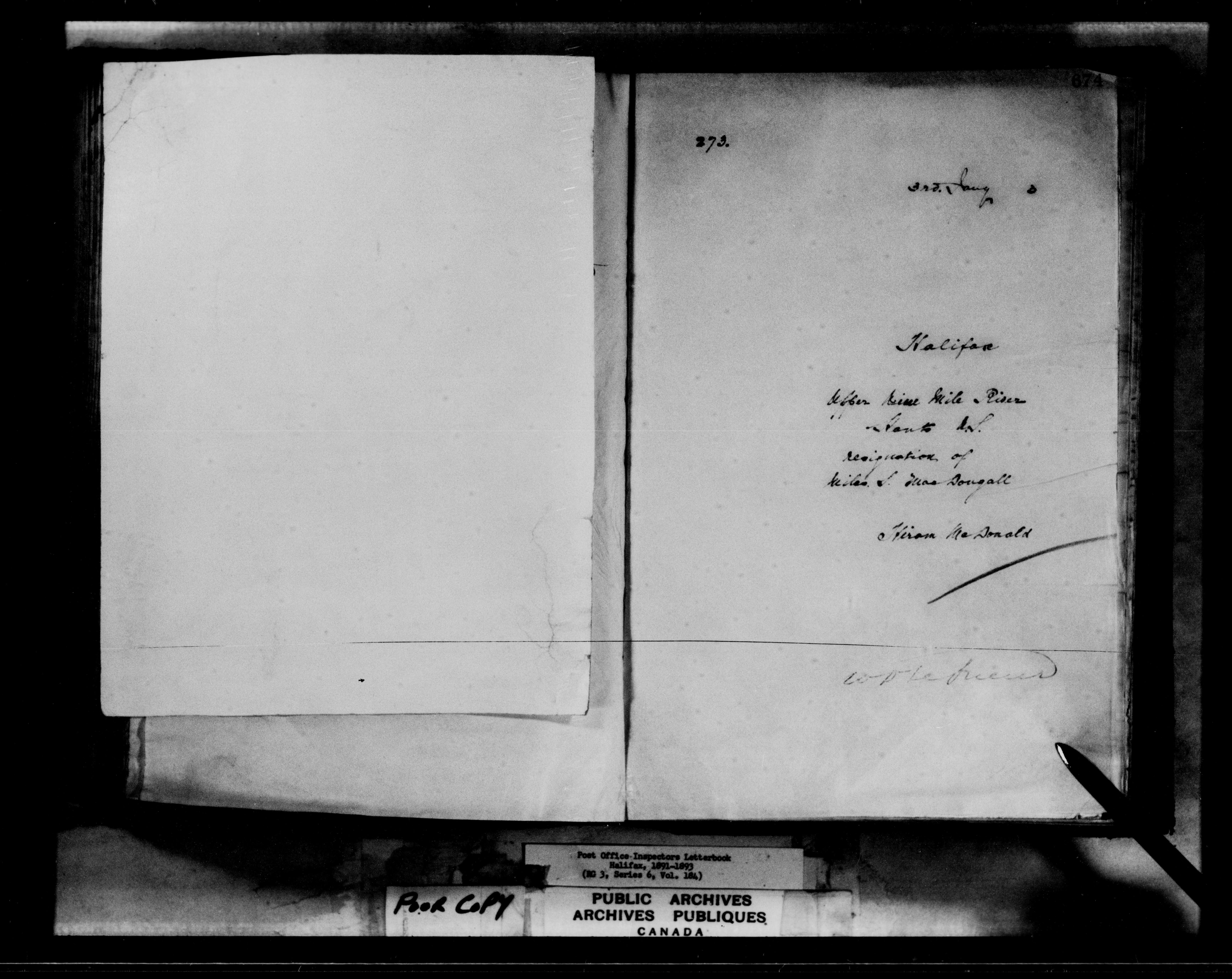 Correspondence from the Secretary to Post Office Inspectors : Letterbooks, Halifax - 7261