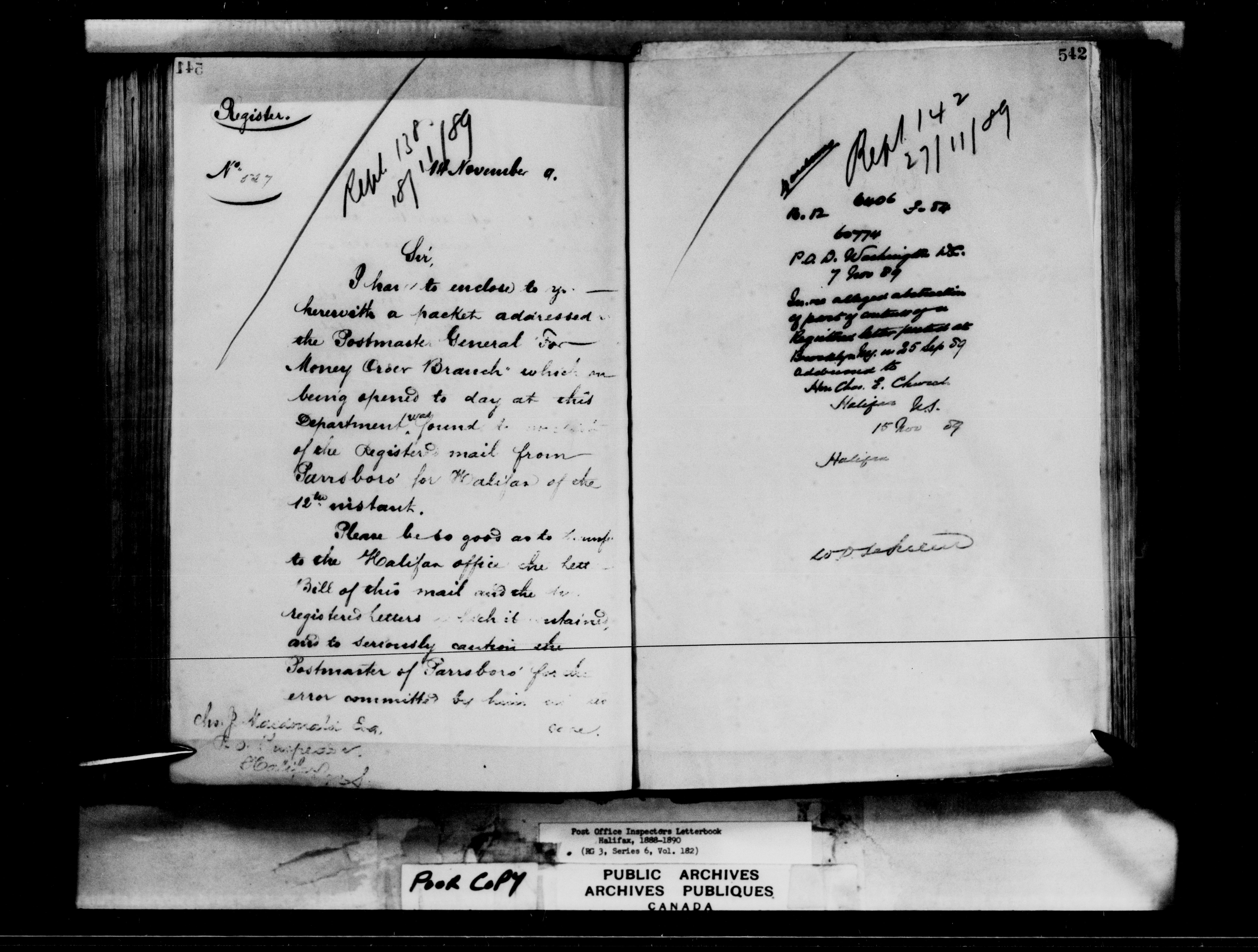 Correspondence from the Secretary to Post Office Inspectors : Letterbooks, Halifax - 7261