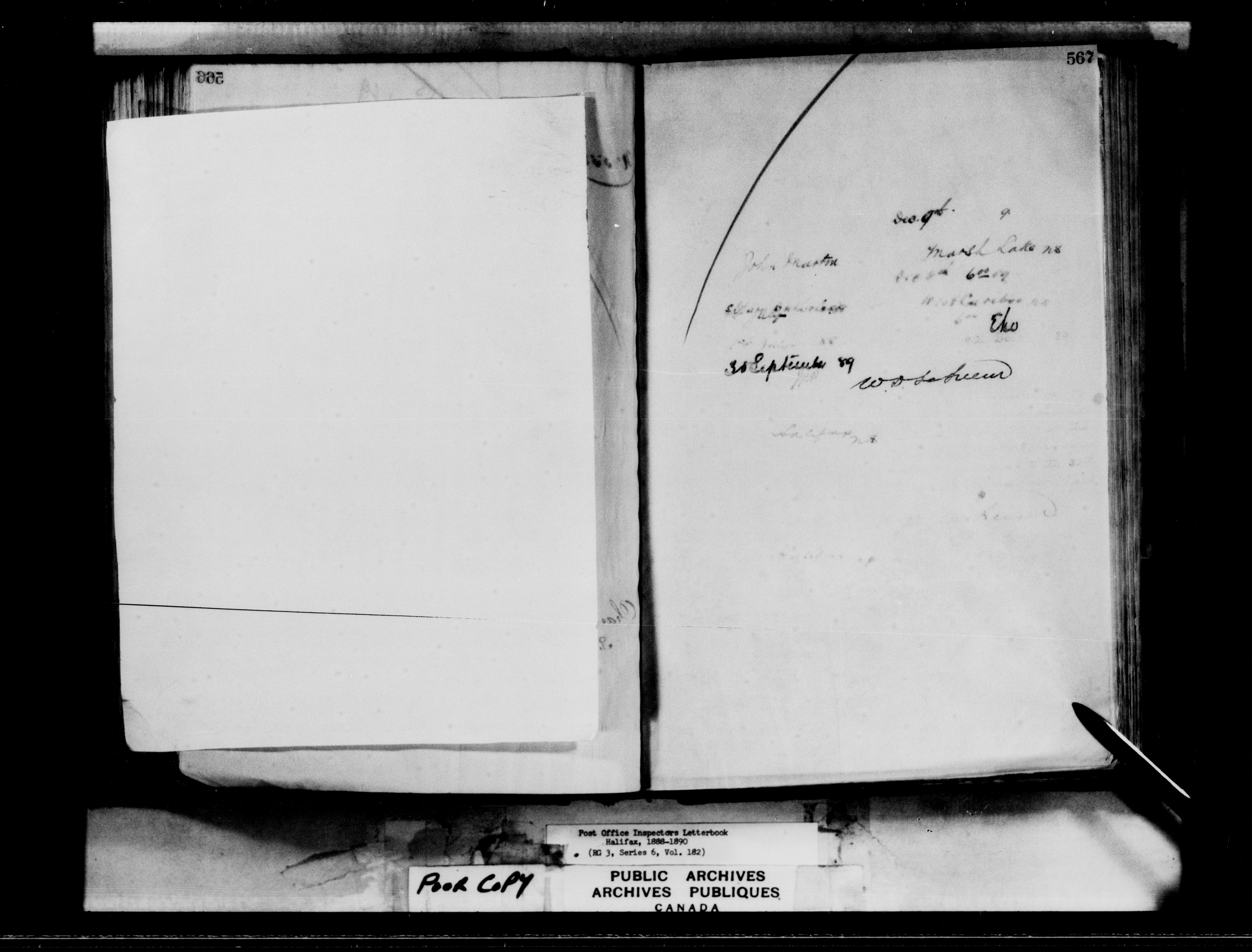 Correspondence from the Secretary to Post Office Inspectors : Letterbooks, Halifax - 7261